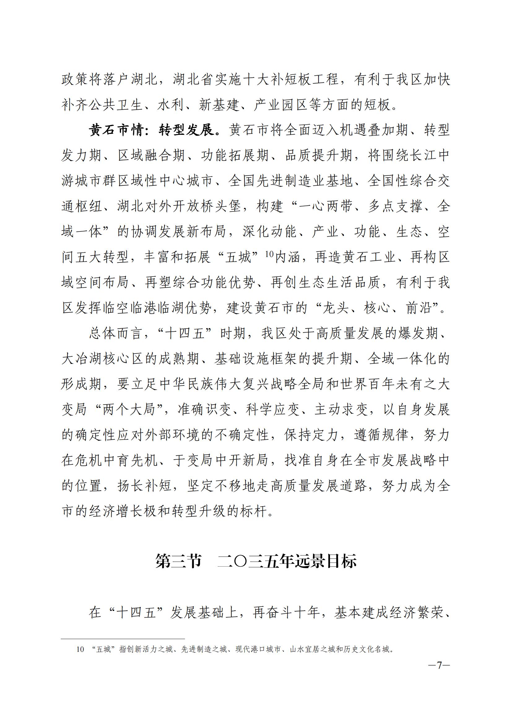 黄石经济技术开发区·铁山区国民经济和社会发展第十四个五年规划和二O三五年远景目标纲要