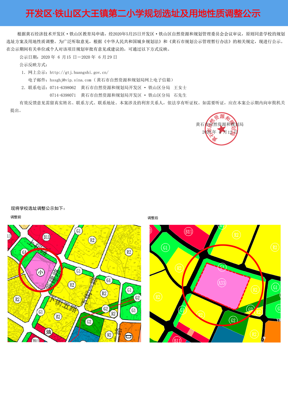 开发区·铁山区大王镇第二小学规划选址及用地性质调整公示
