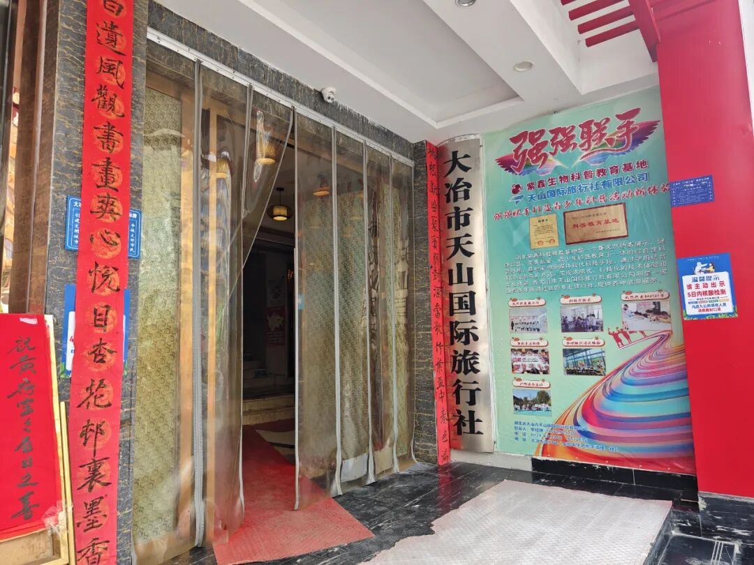 大冶市天山国际旅行社有限公司是经湖北省旅游局批准成立,大冶市工商局注册,具有独立法人资质的旅游专业机构。公司设在大冶市大冶大道70号,与大冶市实验中学为邻,地处繁华地段。公司信誉良好,拥有豪华舒适的交通旅游车和准确的网络信息系统;公司由从事旅游事业多年的专业人士和一批有志从事旅游业的新秀组成,许可证号为:L-HUB14022