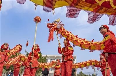 狮子跳跃腾挪象征消灾降魔、驱邪避害,祈愿来年平安健康;翻滚的游龙翘首摆尾,寓意行云布雨,预示来年风调雨顺。因此在春节等重大节日期间,都能看到锣鼓伴奏、龙腾狮跃,富有浓厚的民族色彩和独特的传统艺术性,是中华民族璀璨文化的精华。