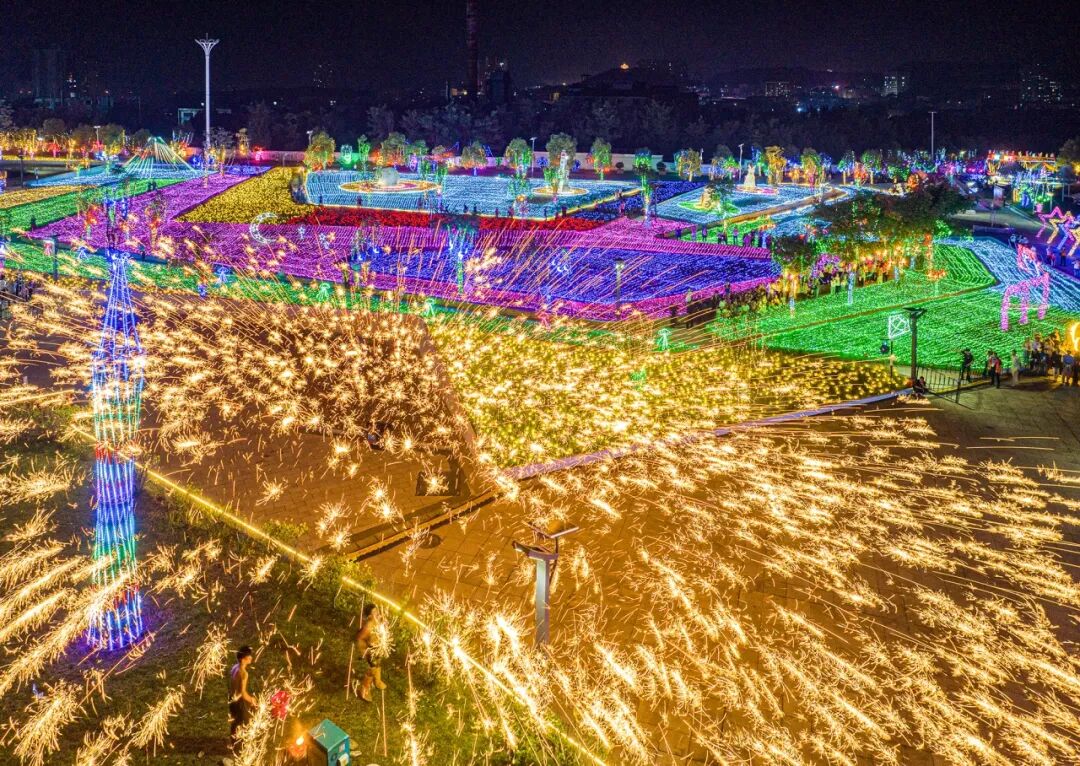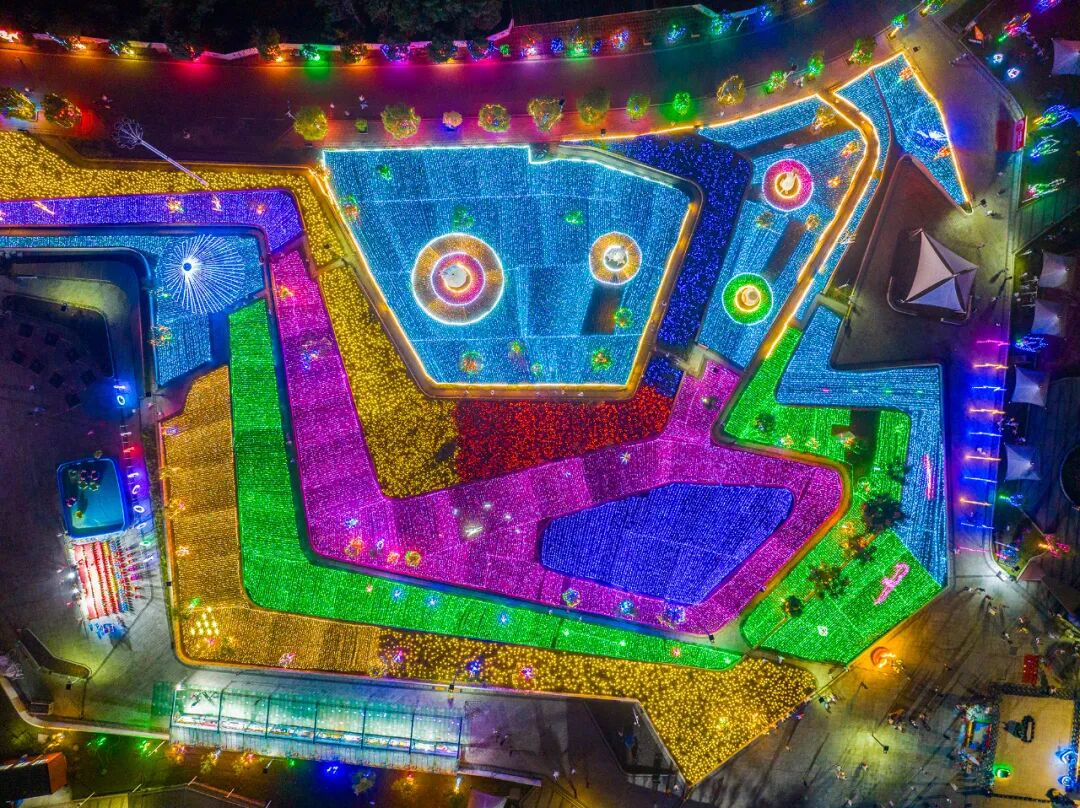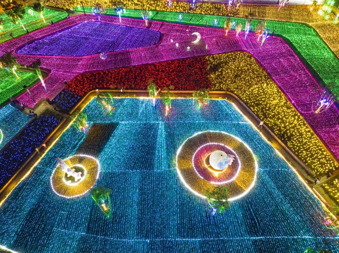 现场,传统花灯将中国彩灯独特的手工技艺和现代光源有机融合,展示中华文化的独特魅力。新媒体灯光也广受欢迎,结合彩灯、梦幻光影、投影技术、特色景观等工艺,通过立体式的布展,打造如梦如幻的光影花灯世界。传统灯组与现代灯组在园区内的碰撞结合,为游客奉上精美文化艺术视觉盛宴。