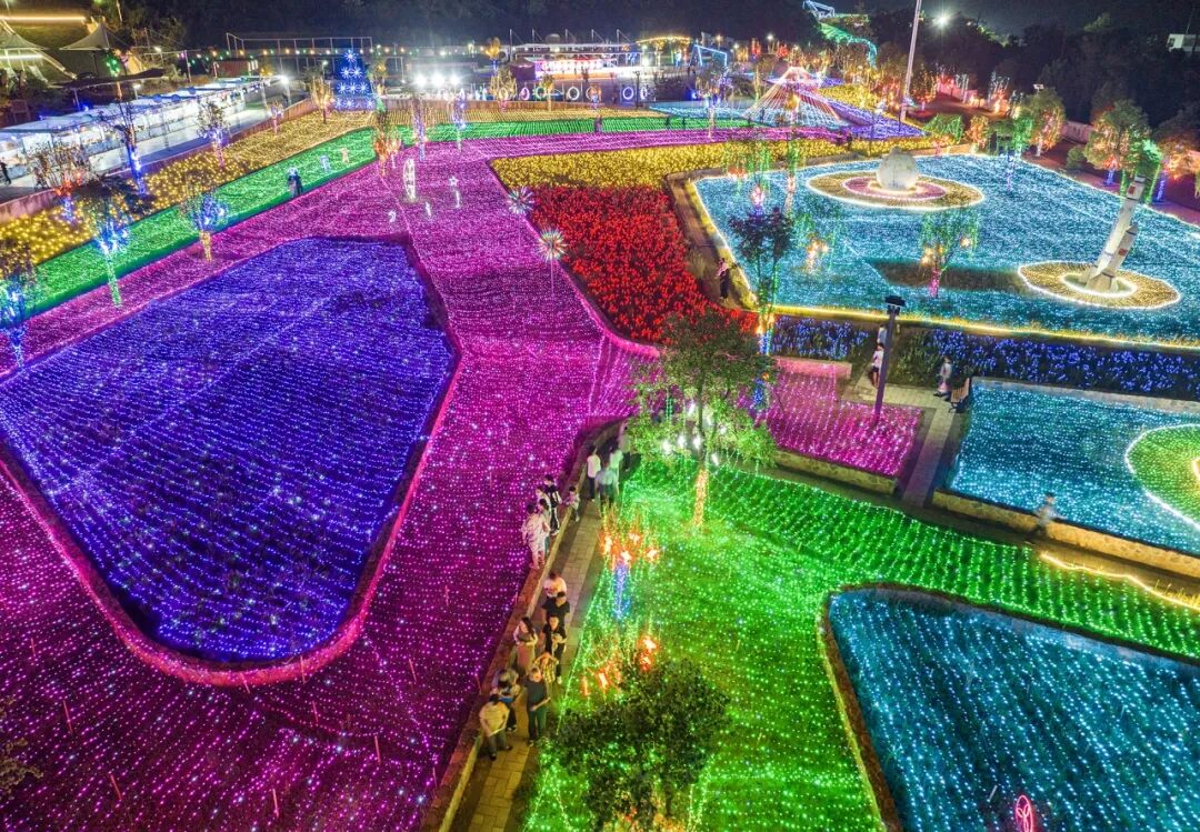 除了西游记人物表演和灯海,园区内还有汉服花车巡游、萌宠乐园、风车“时光隧道”等精彩项目。
