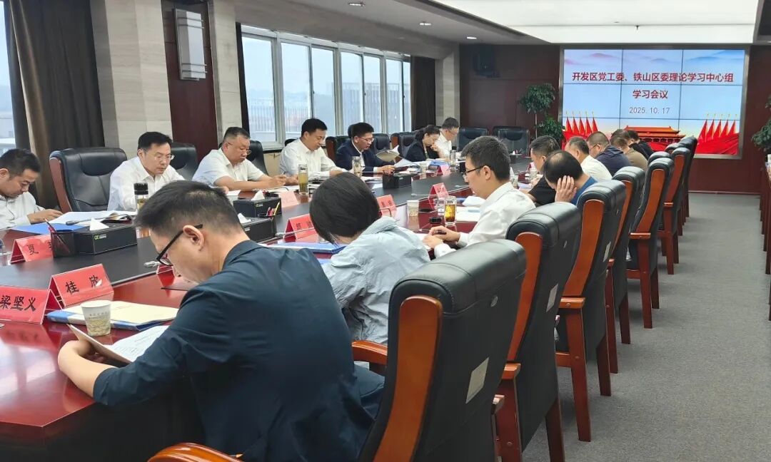 10月17日,开发区党工委书记、管委会主任、铁山区委书记万鼎主持召开党工委、区委理论学习中心组学习会,强调要深入学习《习近平谈治国理政》第五卷,在深学细悟中凝心铸魂,在笃行实干中担当作为,切实把学习成果转化为加快全区高质量发展的实际成效,服务推动全省支点建设。开发区党工委副书记、铁山区区长余文化参加会议并作交流发言。
