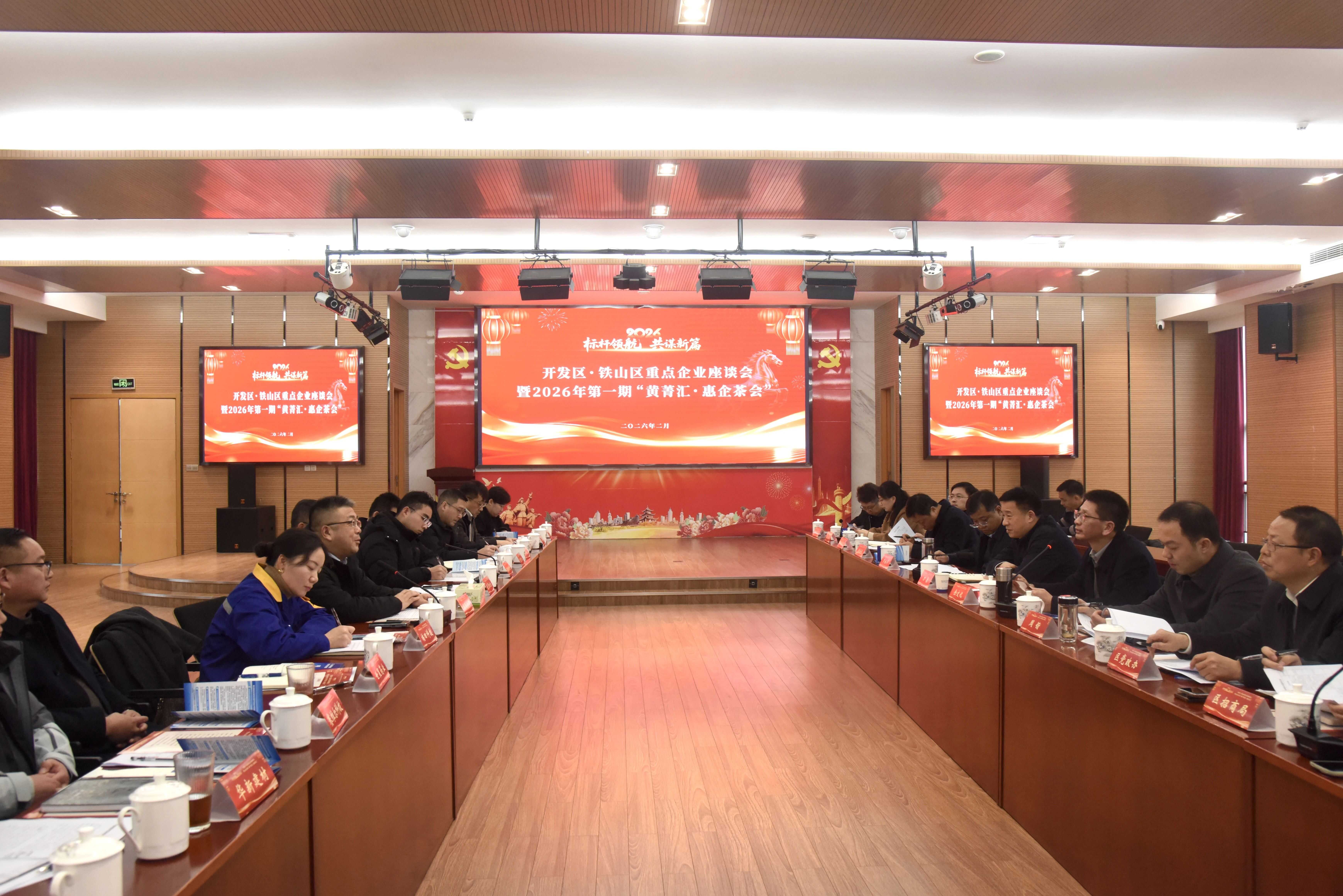 2月6日,开发区·铁山区企业家代表座谈会暨2026年第一期“黄菁汇·惠企茶会”召开,开发区党工委书记、管委会主任、铁山区委书记万鼎参加会议并讲话,开发区党工委副书记、铁山区区长余文化主持会议。