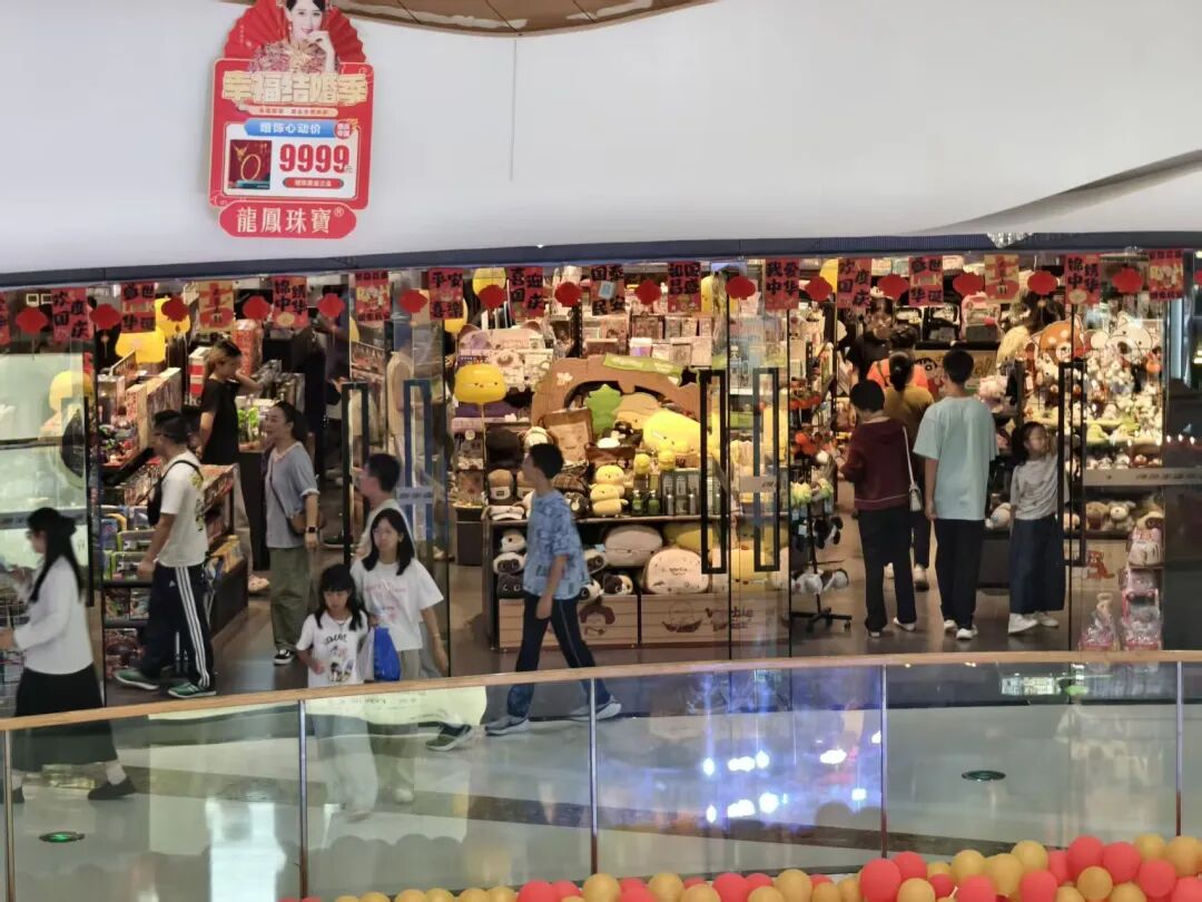 10月1日,武商 MALL 内,国际美妆、潮流服饰、数码科技大力度优惠,黄金门店被人群包围,据负责人介绍,假期前三天客流与销售额显著提升,国庆首日家电数码类销售同比增 97%,钟表区超 60%,黄金珠宝类增 22.3%。