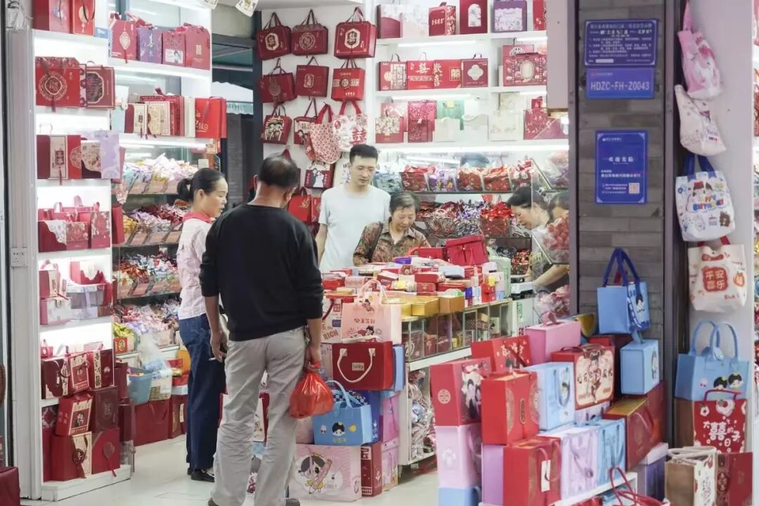 西塞山区的消费热潮,从白天延续至深夜。双节首日清晨,上窑小商品市场内,节日饰品、精品礼盒、特产小食区人流如织,结婚伴手礼、百日宴定制礼盒成 “香饽饽”,商户们备足库存还推出满减、打折活动,销量同比大幅增长。