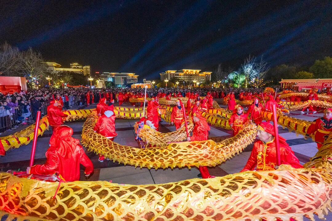 启幕当日,350米长的“中华武龙第一灯”王贵武龙灯惊艳亮相,300余名参演队员配合龙门、龙牌、戏珠及锣鼓、牌子锣队,演绎出蛟龙出海、盘旋腾飞的震撼画面。