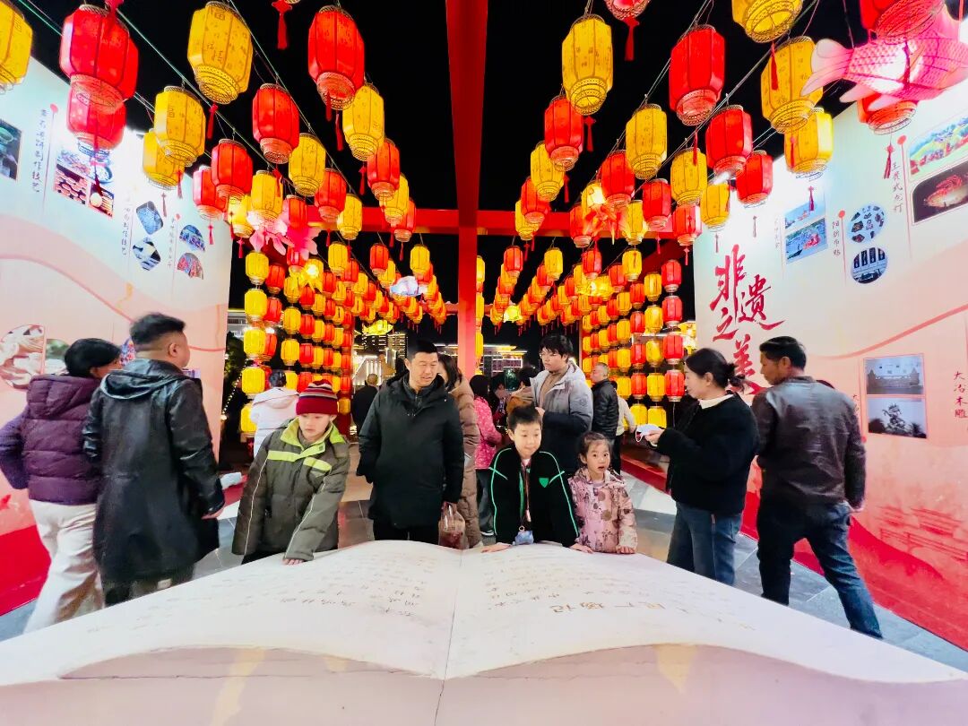 活动现场,千盏红灯笼装点的非遗长廊串联起中央舞台与六大市集,长廊两侧还设置了非遗打卡立牌与二维码解说牌,扫描对应灯笼旁的二维码,就能一键了解黄石非遗项目的历史渊源、技艺特色。