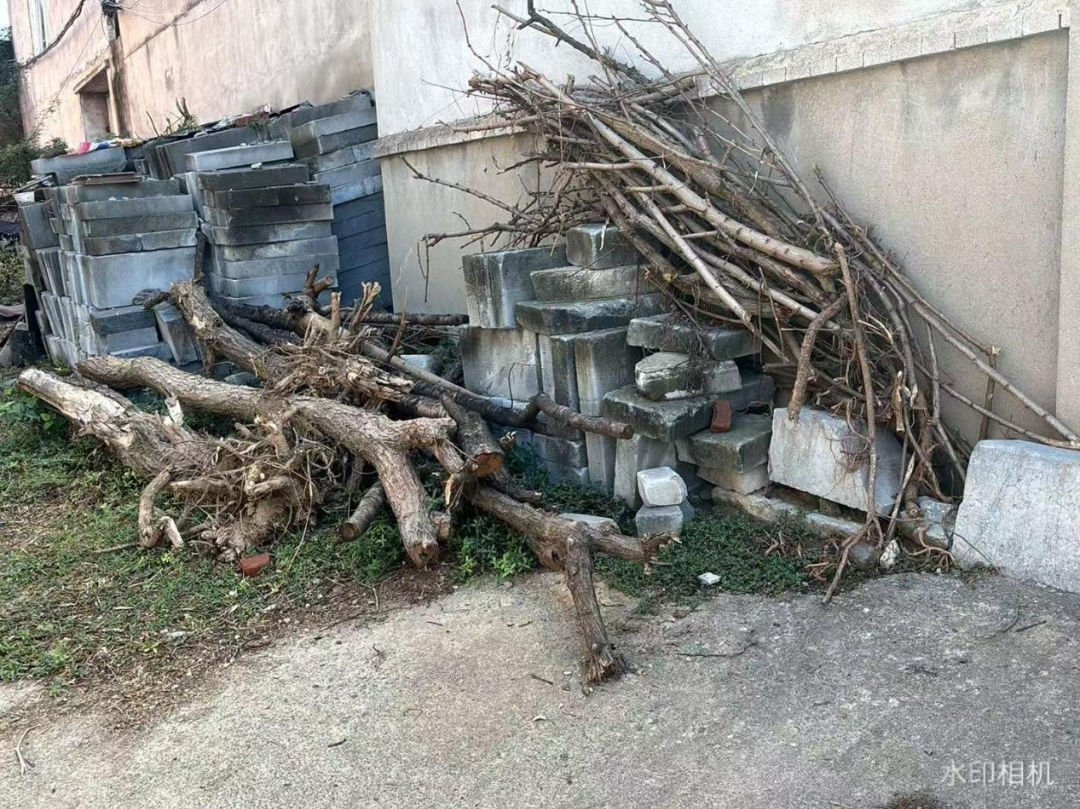 金山街道明港村李佰美湾路边柴草、砖石杂物堆积