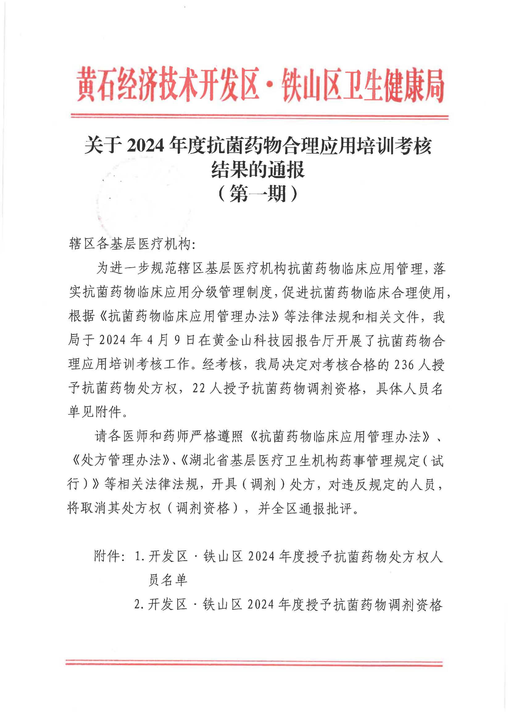 关于2024年度抗菌药物合理应用培训考核结果的通报 (第一期)