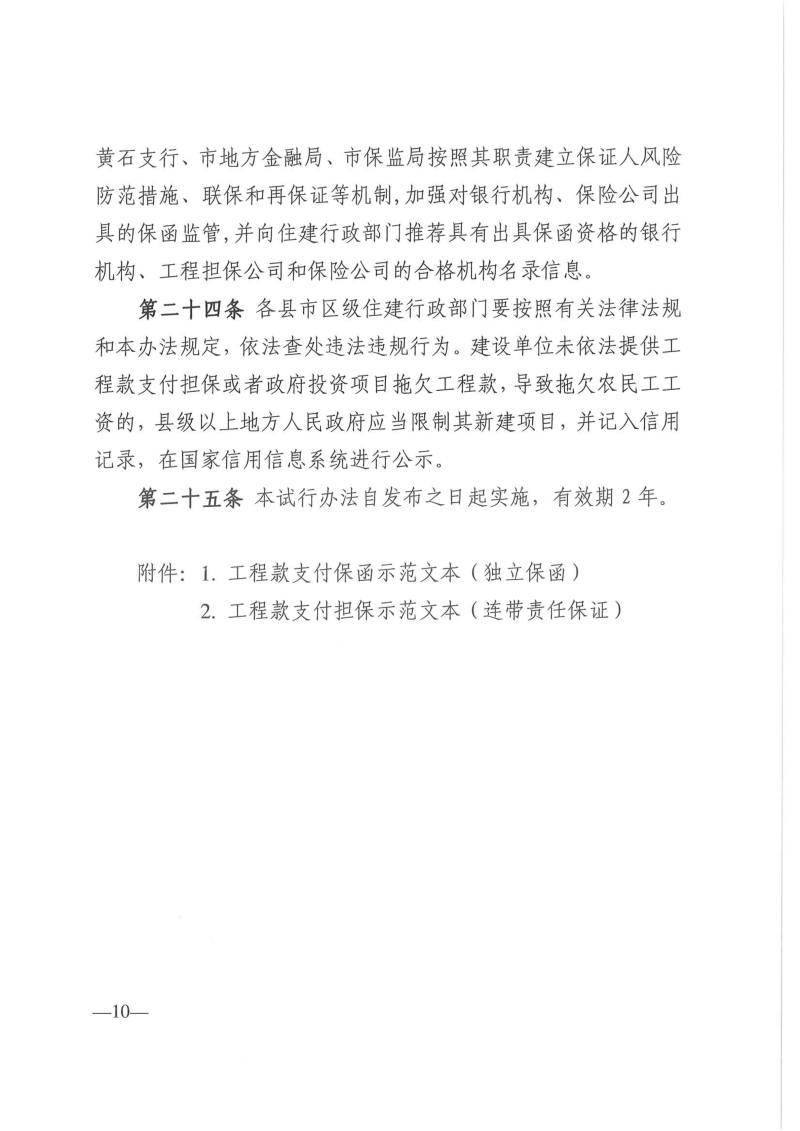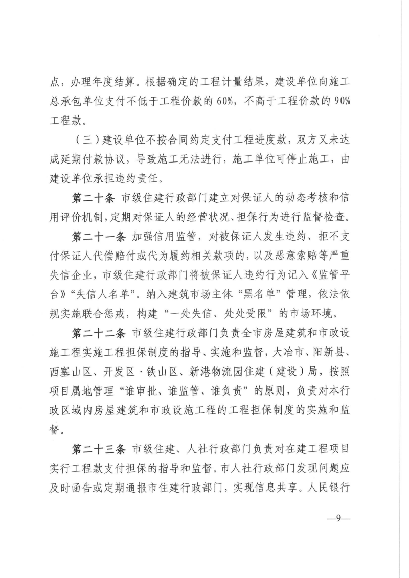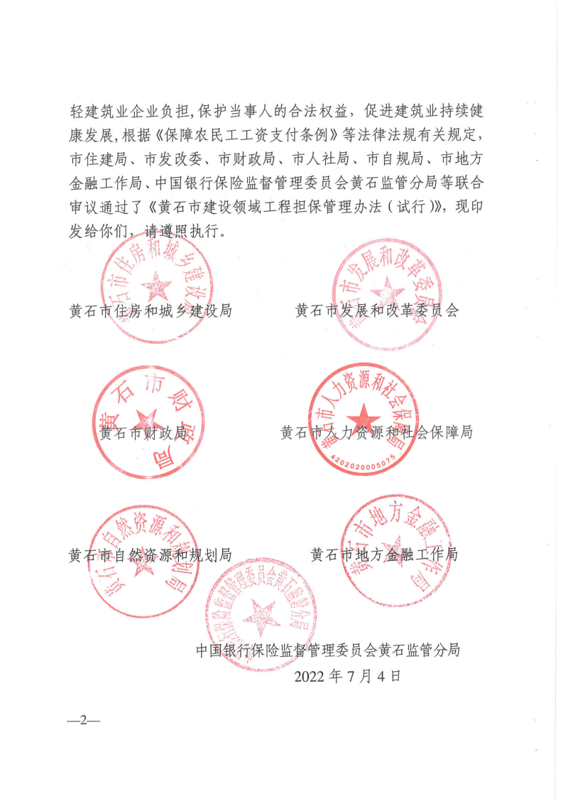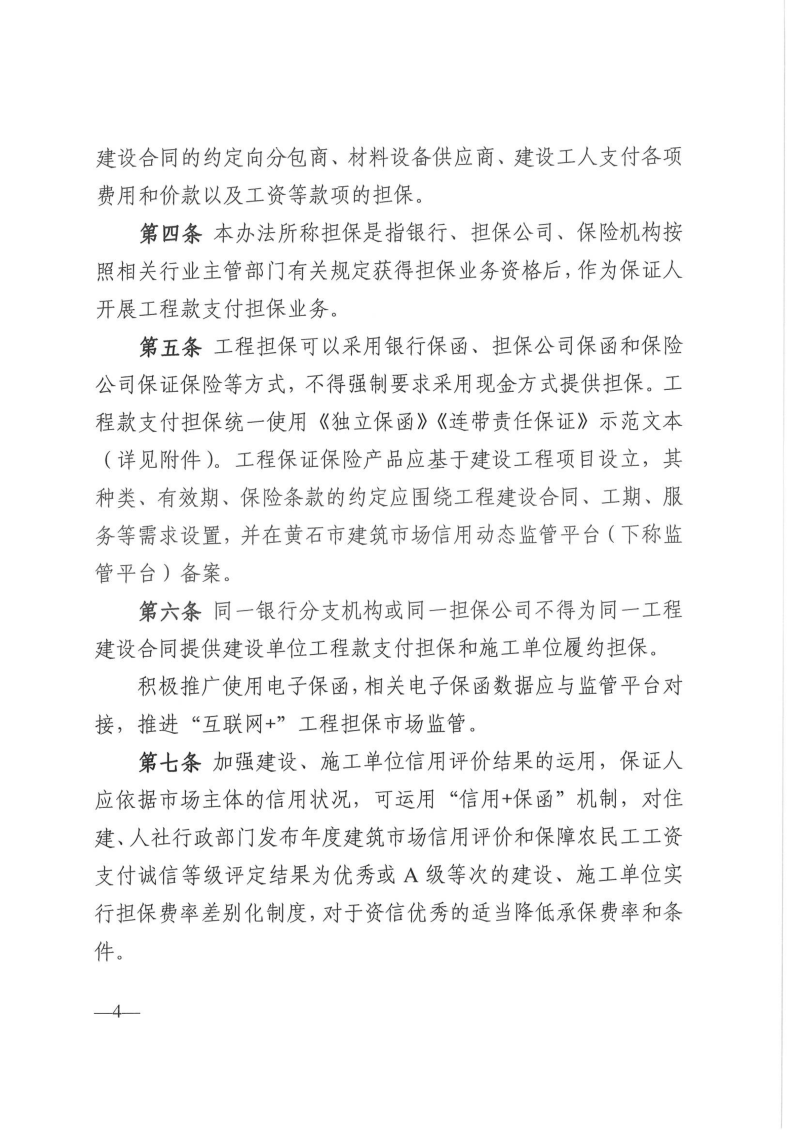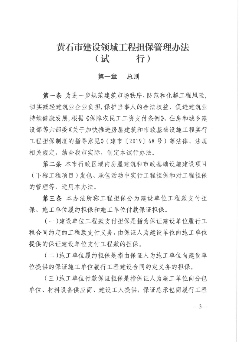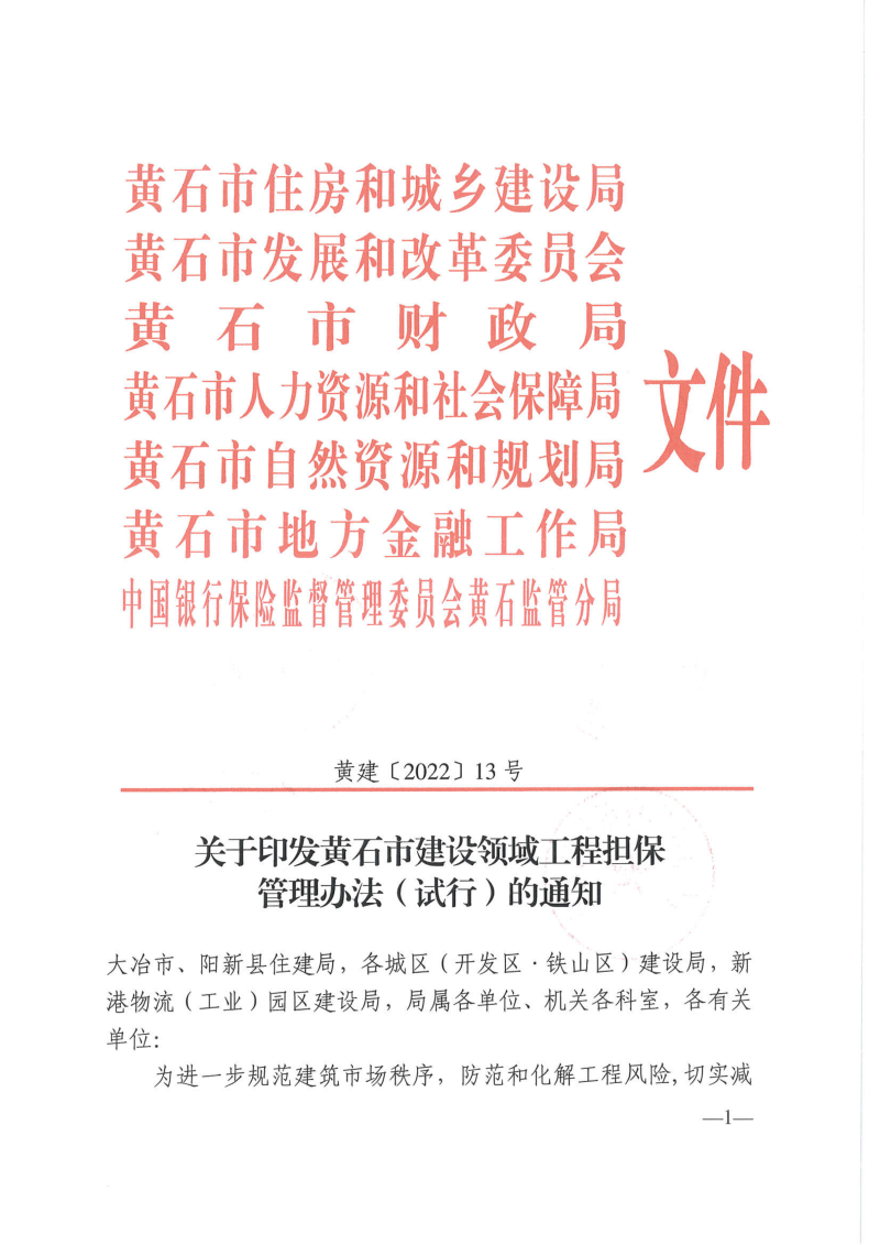 关于印发黄石市建设领域工程担保管理办法(试行)的通知