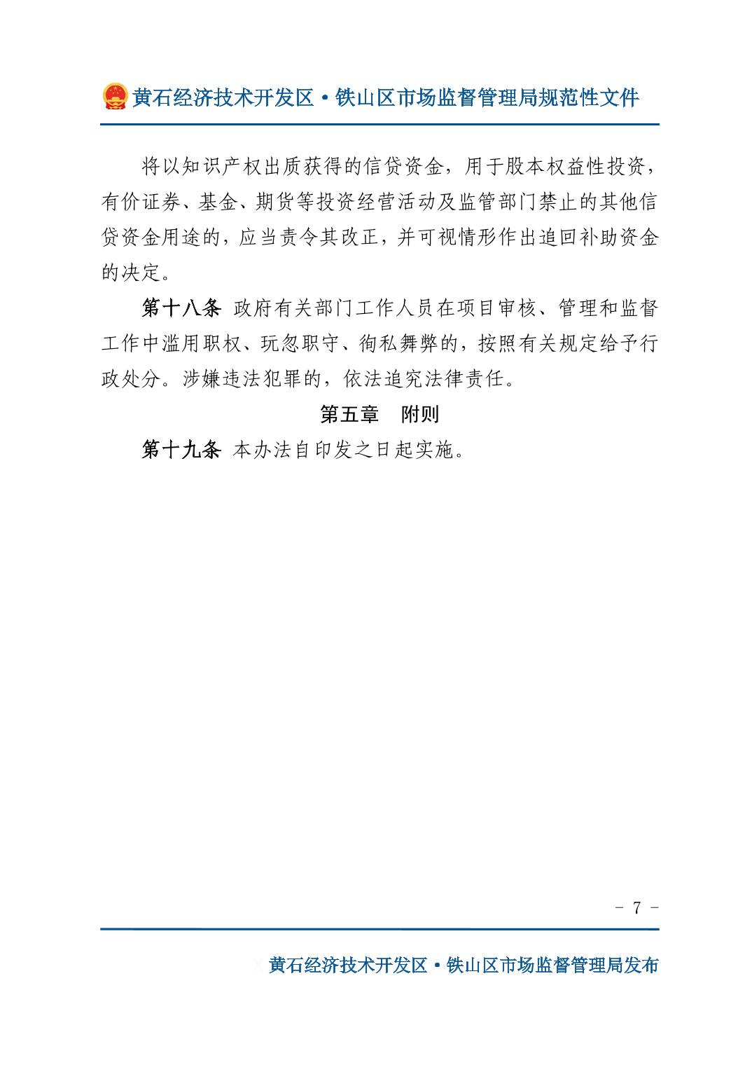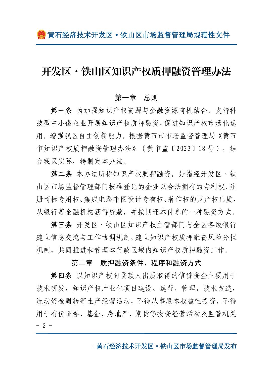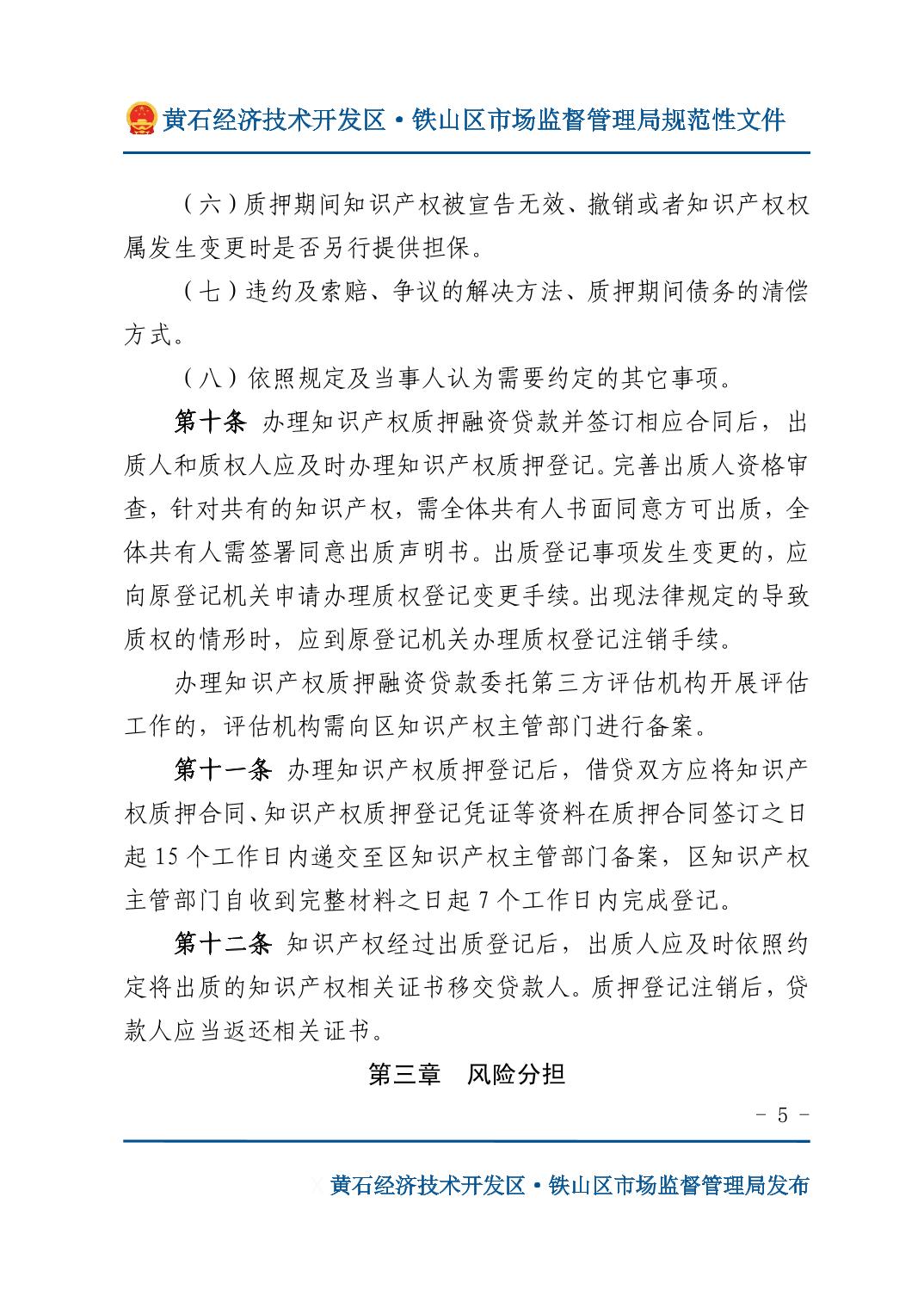 关于印发《开发区·铁山区知识产权质押融资管理办法》的通知
