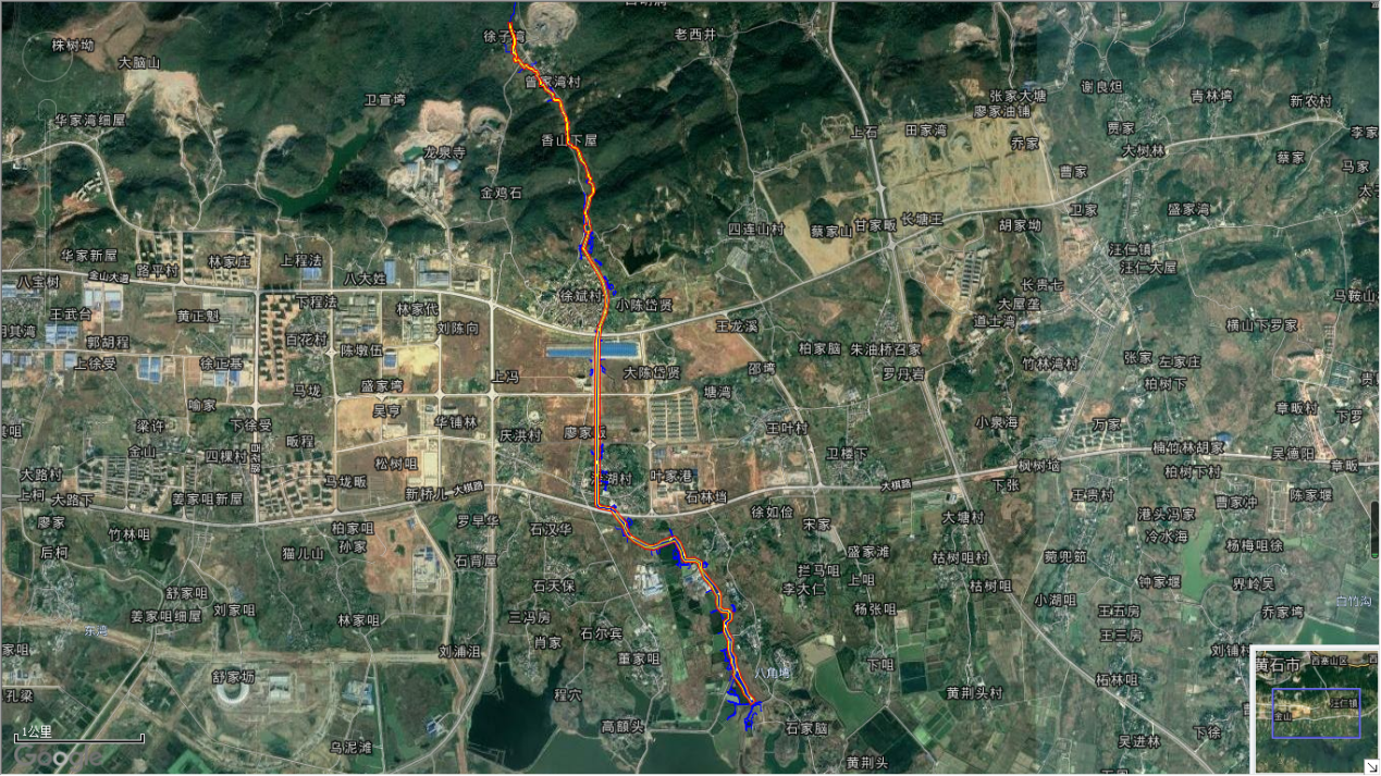 河流管理范围总面积:200567.19平米;河流管理范围总长度:12413.814米;河流保护范围总面积:325465.19平米;河流保护范围总长度: 12492.874米;界桩埋设的数量:51个。