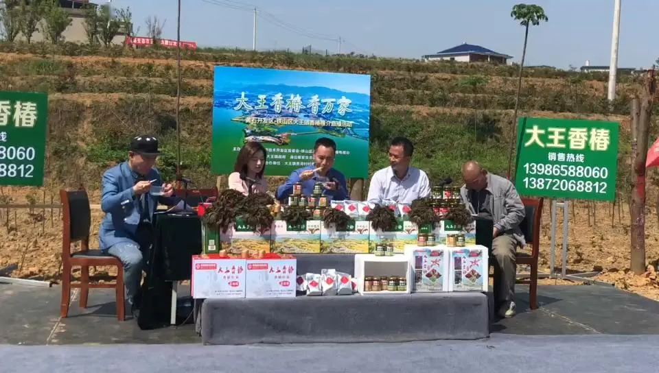 2020年4月26日,“大王香椿香万家”网络直播带货活动在贵湾村香椿基地举办。开发区·铁山区副区长石斌和大王镇镇长叶鹏为香椿产品代言促销,1小时带货直播吸引10.6万人次观看,现场订购香椿315斤、香椿酱1300件。直播当天实现销售额6万多元,后续实现销售额11万元。 2020年11月9日,由大王镇举办的“香椿中国万里行暨长江经济带香椿产业高峰论坛”举行。论坛举办期间,多个香椿产业合作项目签约,进一步扩大了大王香椿的品牌影响力。