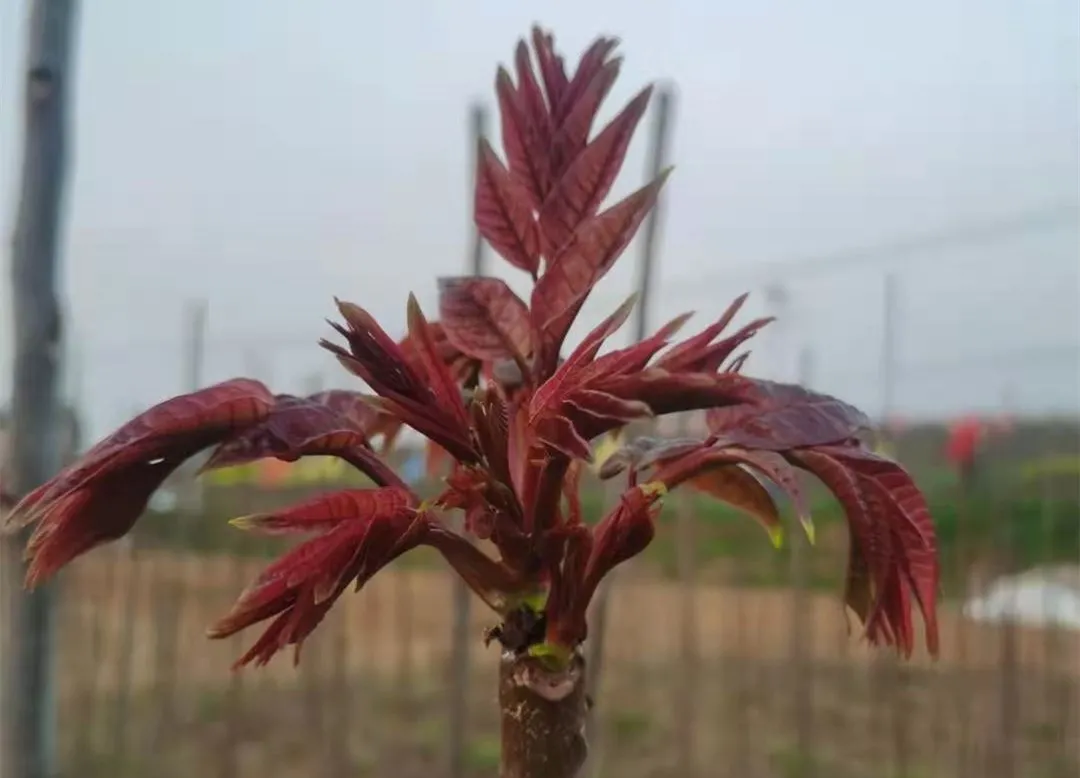 李祥兵组建团队,因地制宜选择了中华红香椿中的鸡冠红红油香椿进行种植。鸡冠红红油香椿生长势较强,采摘时间为每年2月中旬至7月下旬,而且口感脆嫩,香味浓郁,回味鲜甜。