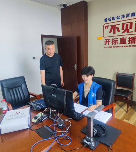 (开发区公共资源交易中心工作人员对铁山区城市排水防涝能力提升(铁山区中心城区老旧小区)改造项目(港渠提升工程)不见面开标现场进行见证)