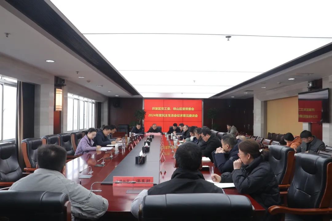 1月10日下午,开发区党工委书记、管委会主任、铁山区委书记万鼎主持召开党工委、区委常委会2024年度民主生活会征求意见会,听取镇(街)、区直部门、非公企业相关负责人对开发区党工委、铁山区委常委班子和党工委委员、区委常委个人的意见建议。