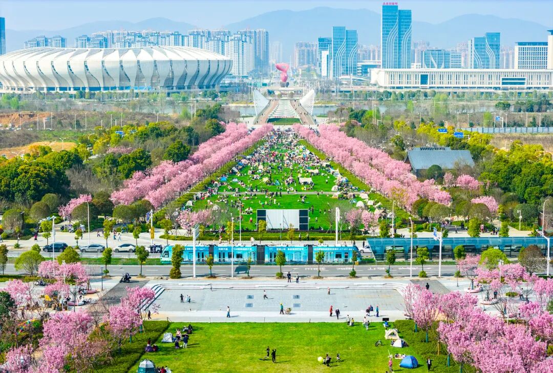 这个春天,不妨赴一场奥体花客厅的樱约,看落樱漫舞,听人声熙攘,在满城春光里,遇见大冶湖核心区的无限风华与璀璨未来。