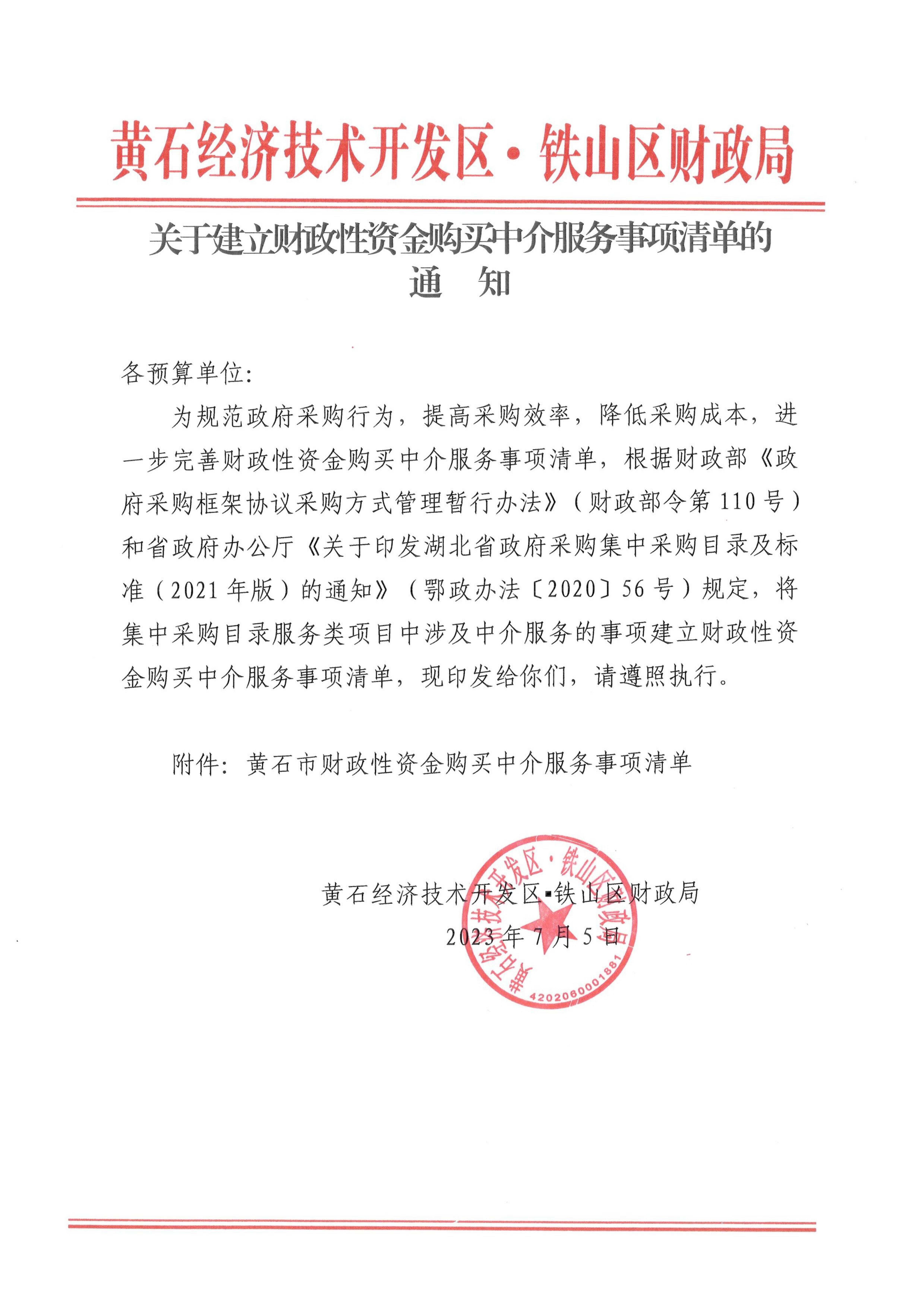 关于建立财政性资金购买中介服务事项清单的通知