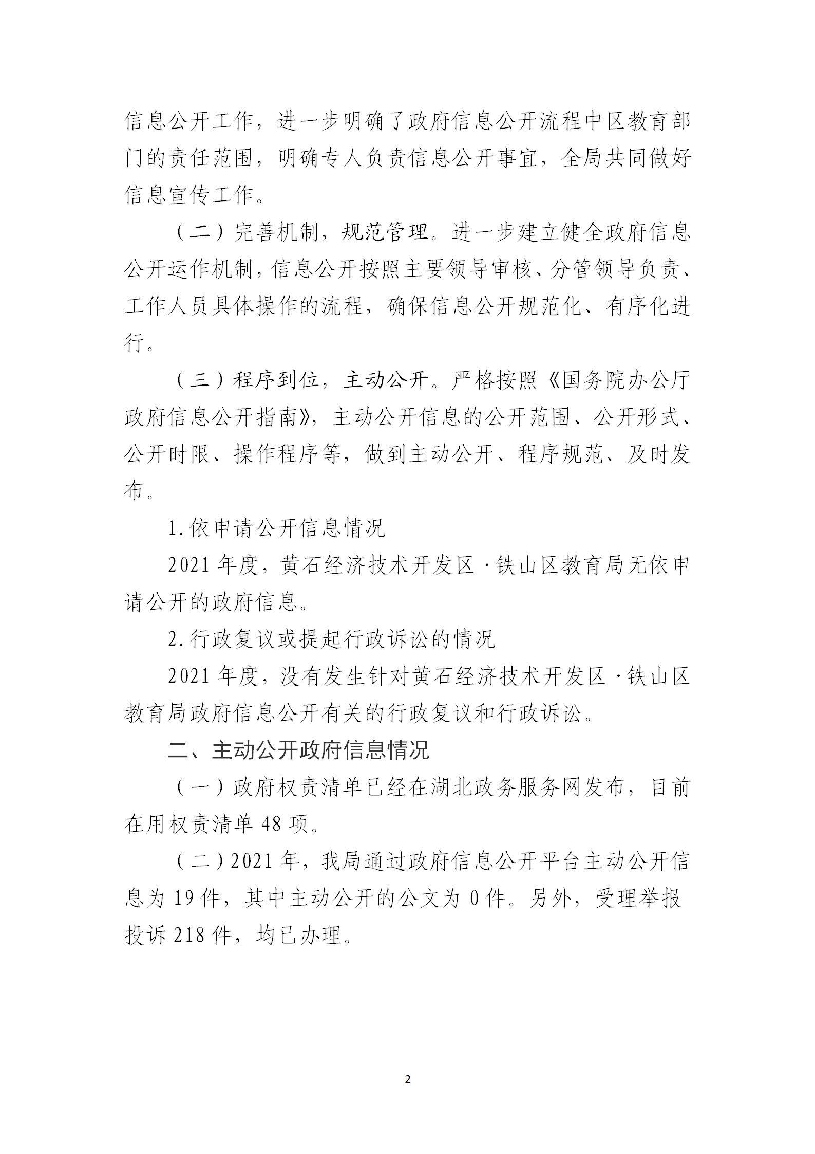 开发区·铁山区教育局2021年政府信息公开工作年度报告