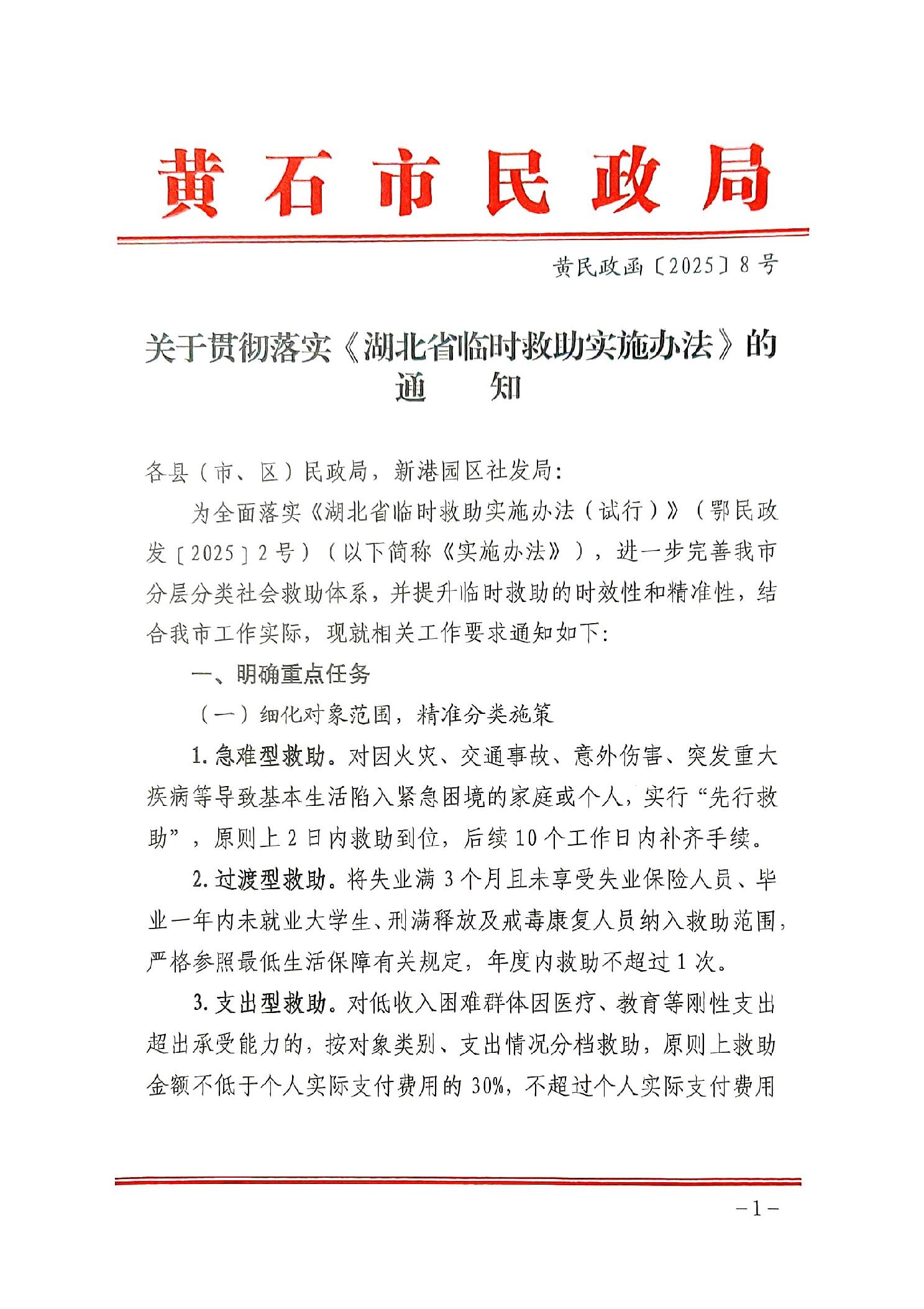 关于贯彻落实《湖北省临时救助实施办法》的通知