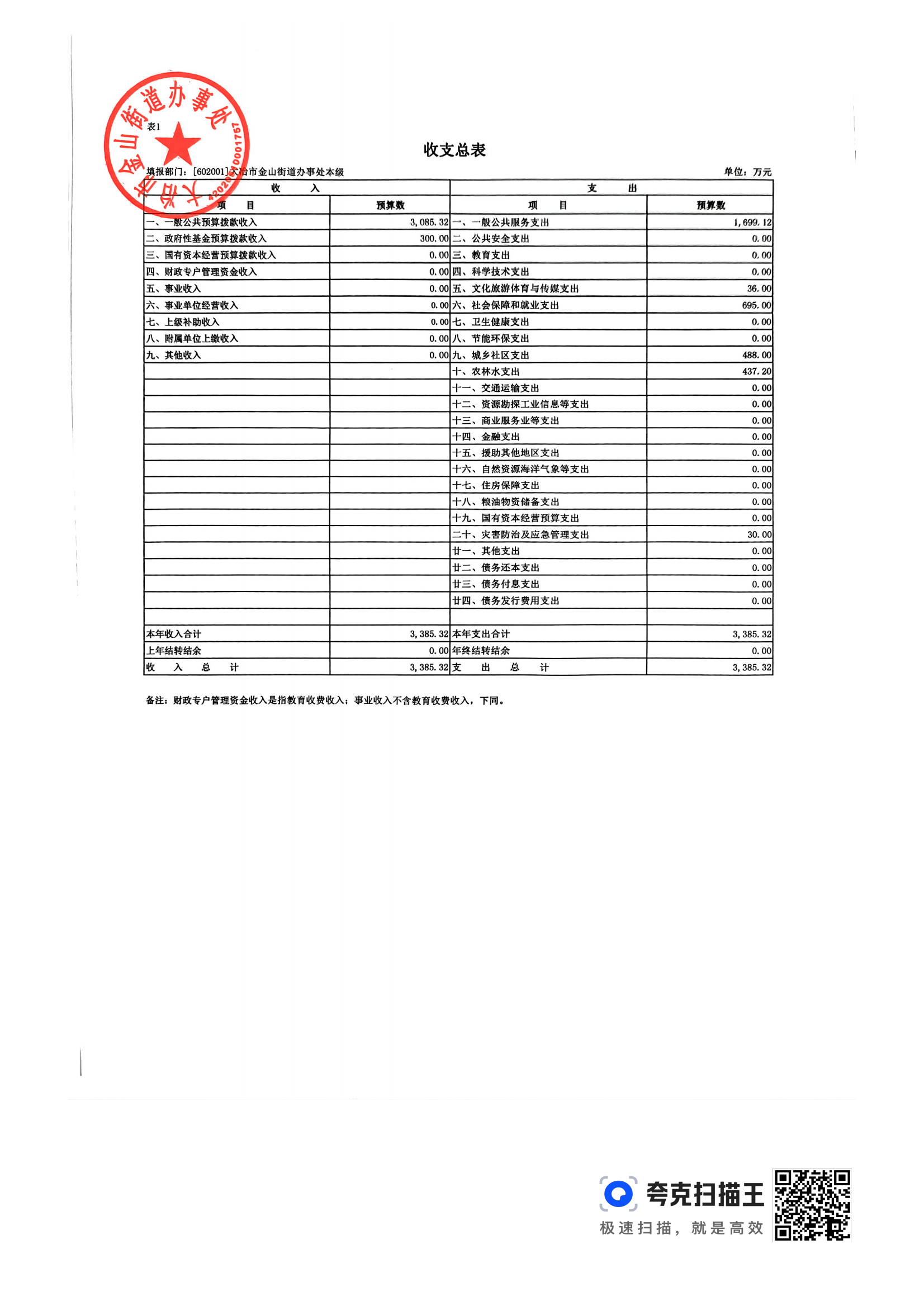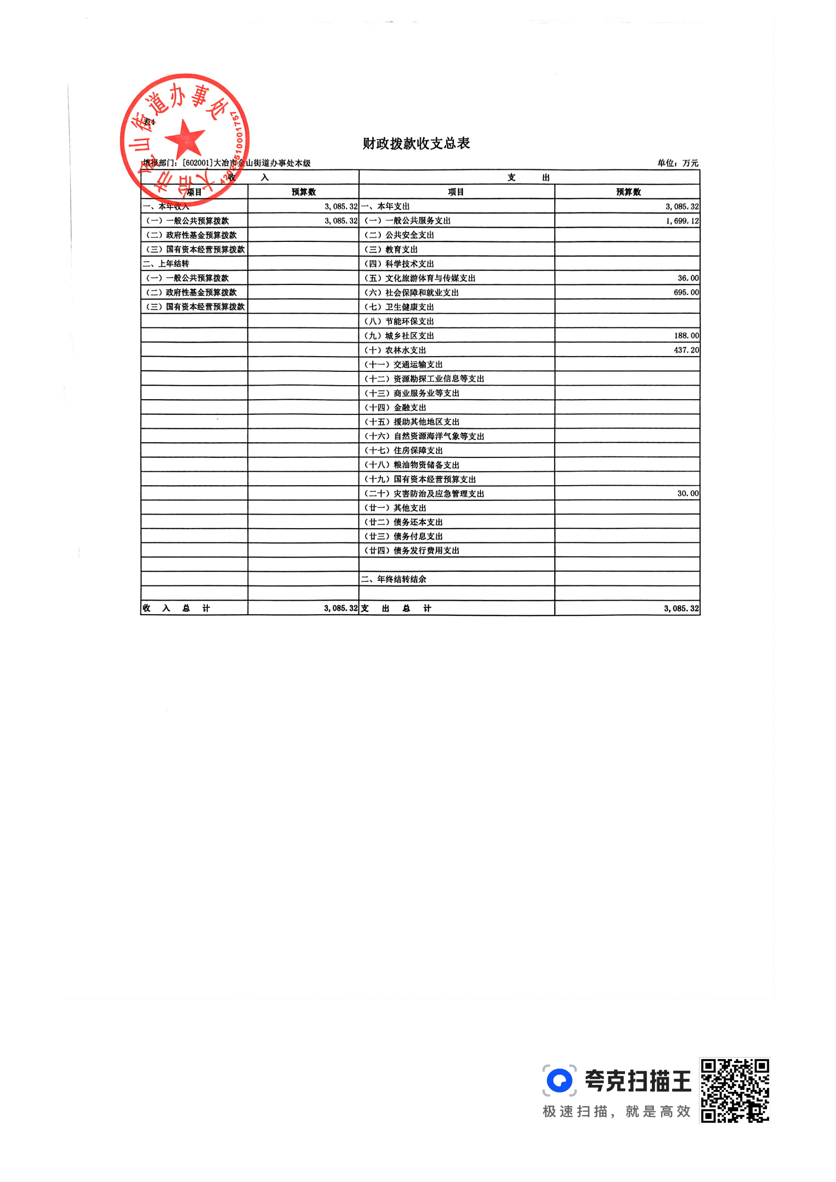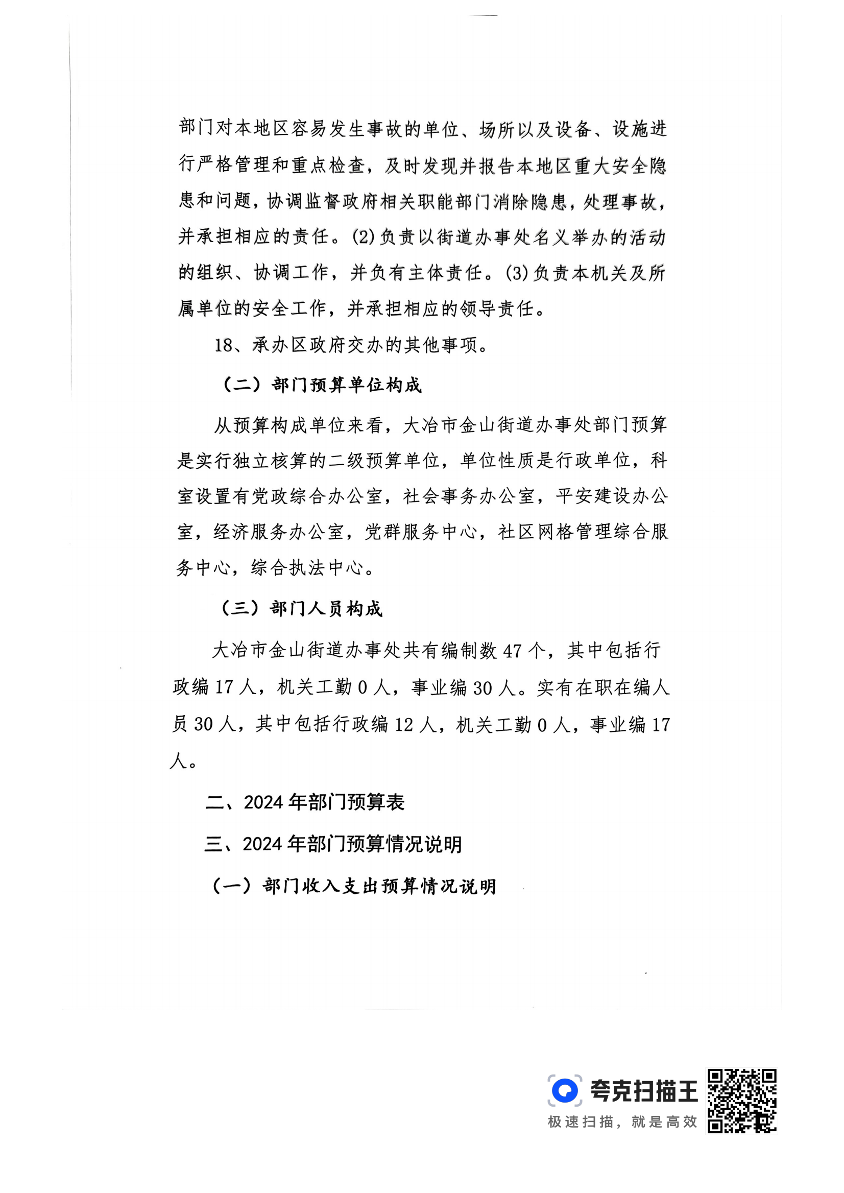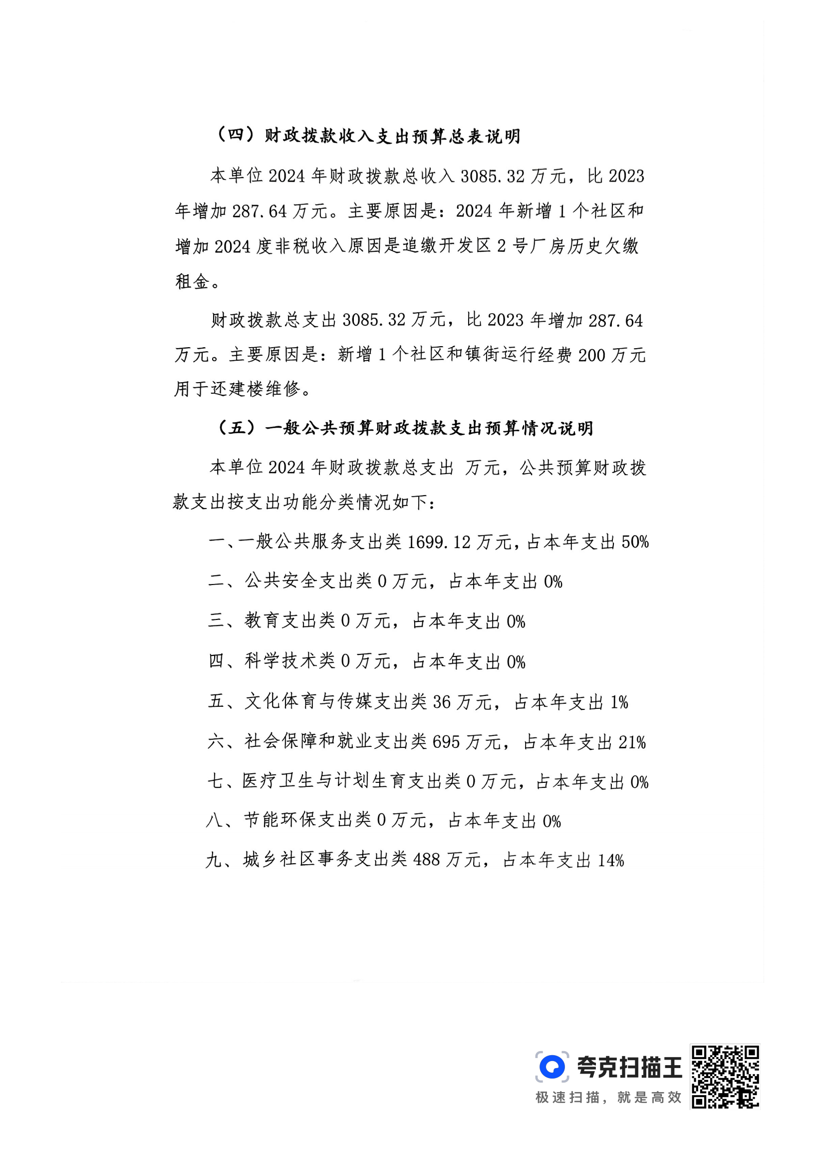 金山街道2024年部门预算公开