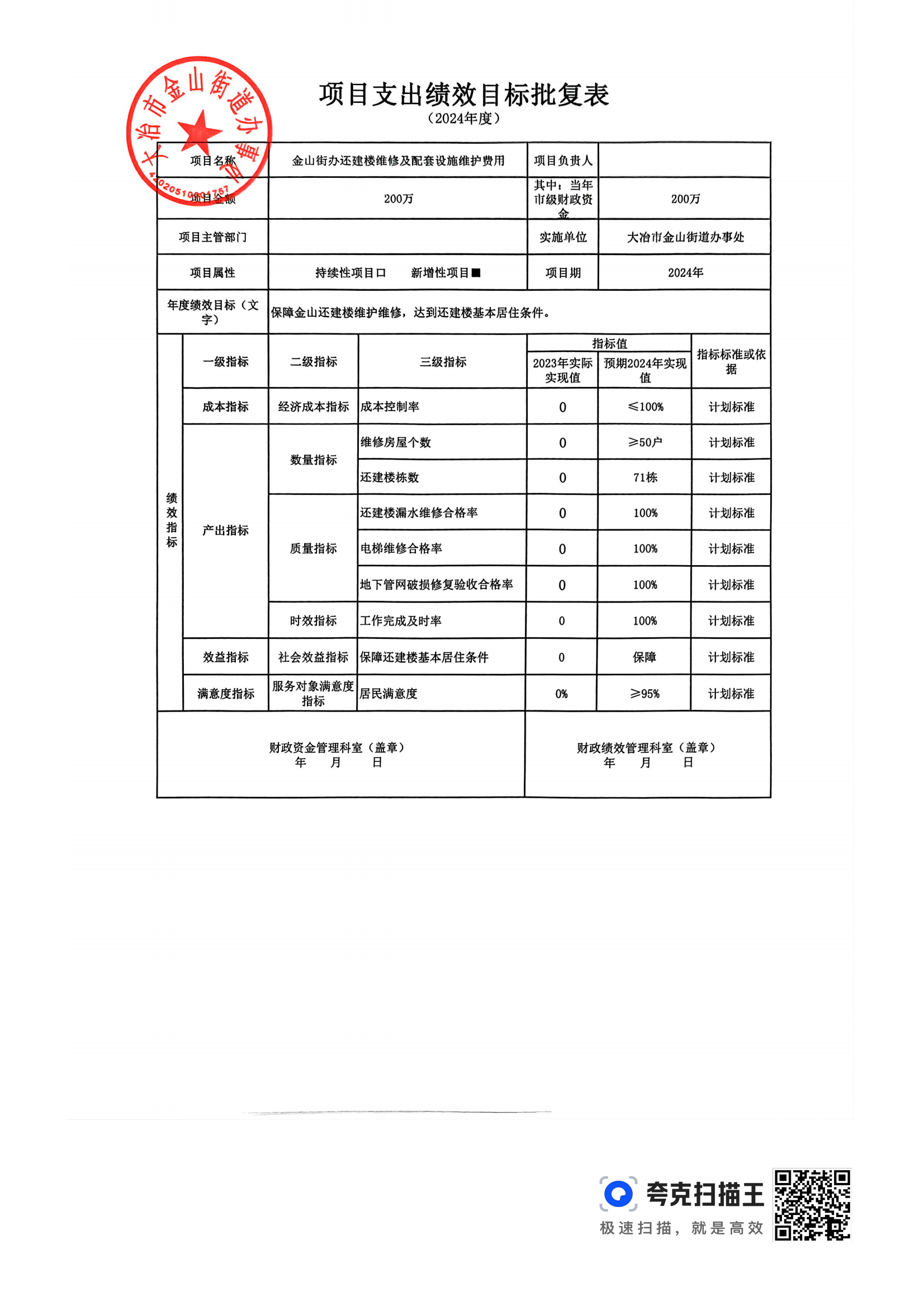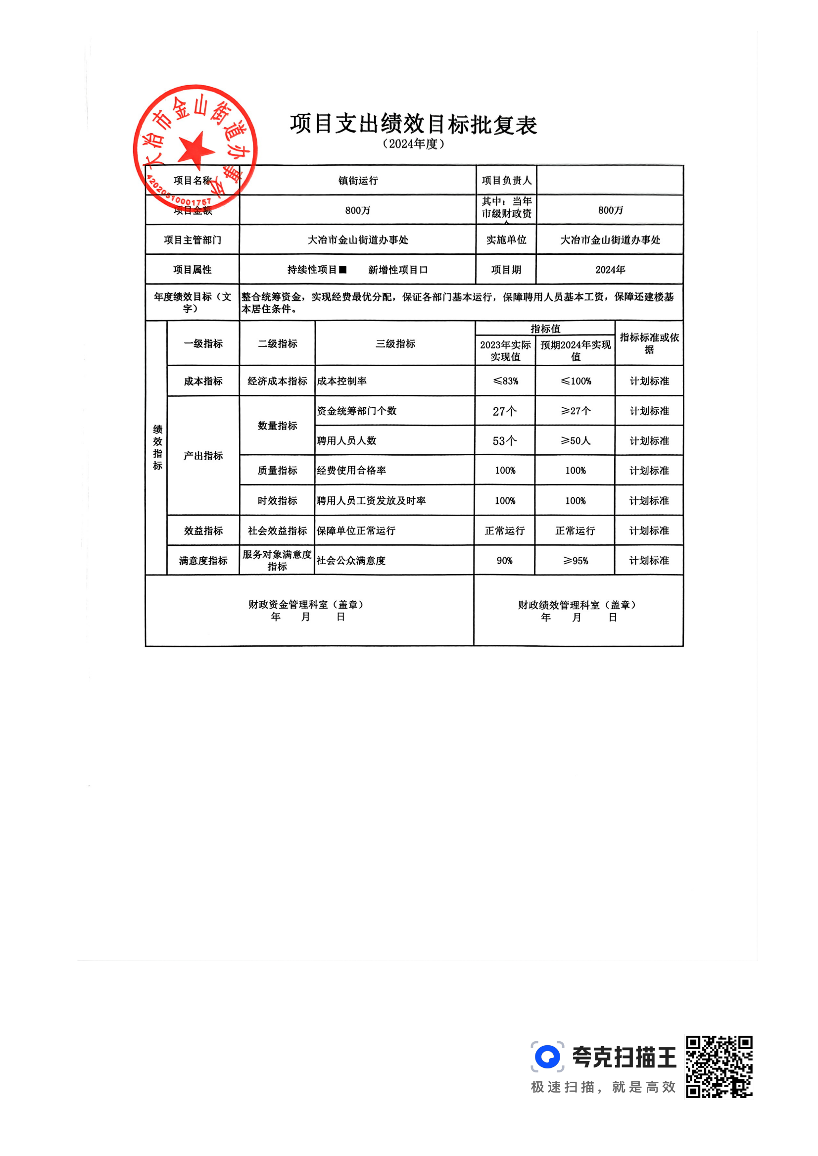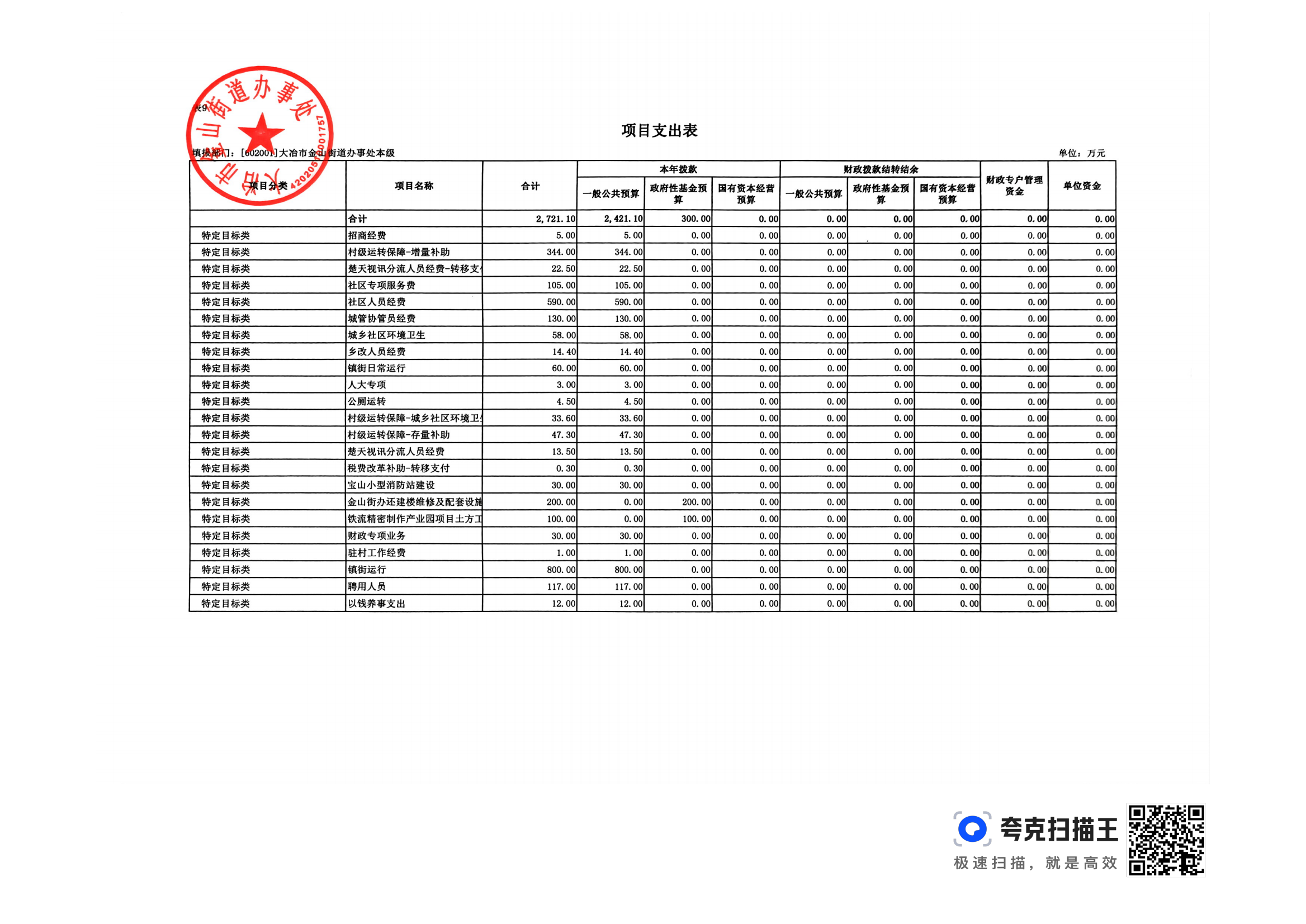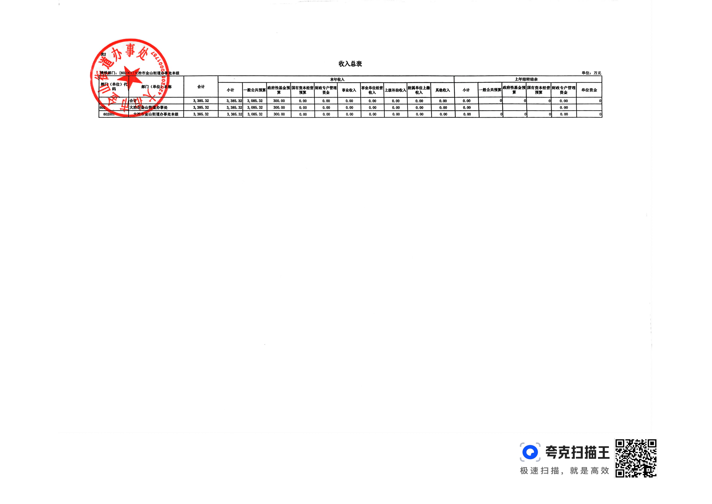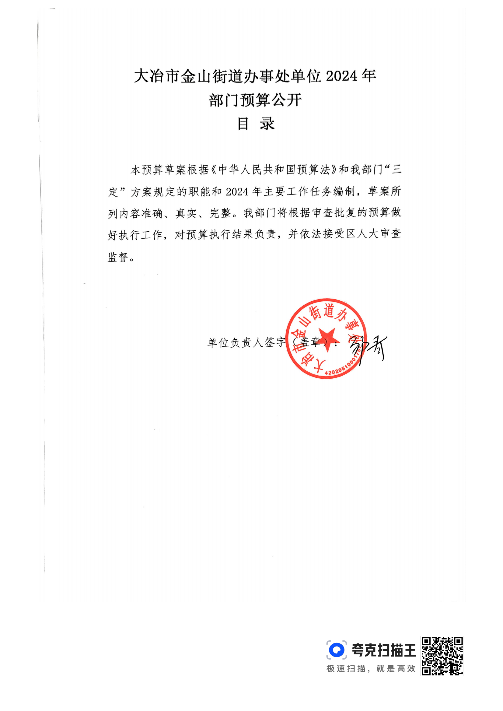 金山街道2024年部门预算公开