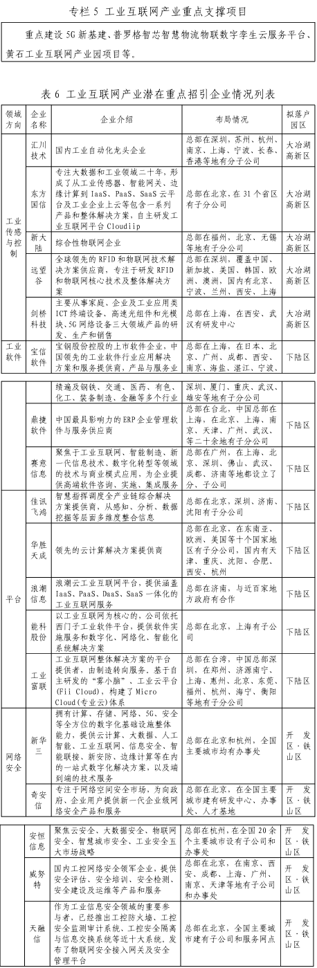 以中国工业互联网创新发展大会永久会址和工业互联网标识解析二级节点为契机,以推进制造业数字化、网络化、智能化为主线,围绕工业互联网功能体系构建,引进知名龙头企业,完善网络、传感与控制装备、软件、平台、安全等产业布局,打造特色产业园区,加快技术创新与推广应用,推动发展智能化生产、个性化定制、网络化协同、服务化延伸、数字化管理等新业态新模式,逐步形成工业互联网融合发展的良性生态体系。到“十四五”末,全市5G、大数据、人工智能、工业互联网等新一代信息技术与电子信息、智能装备等制造业深度融合,打造成为全国工业互联网产业创新发展先行区,全省领先的工业互联网创新发展示范区。