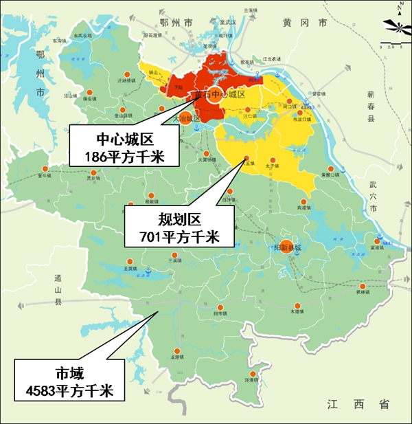 三是城市规模与特色:作为与武汉国家中心城市相辅相成的区域性中心城市,黄石寻求合理的发展规模与良好的空间布局结构。