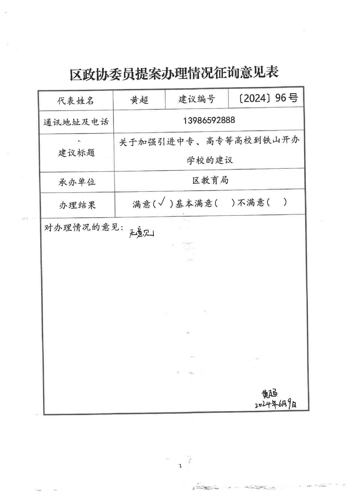 关于区九届政协三次会议第96号提案的答复
