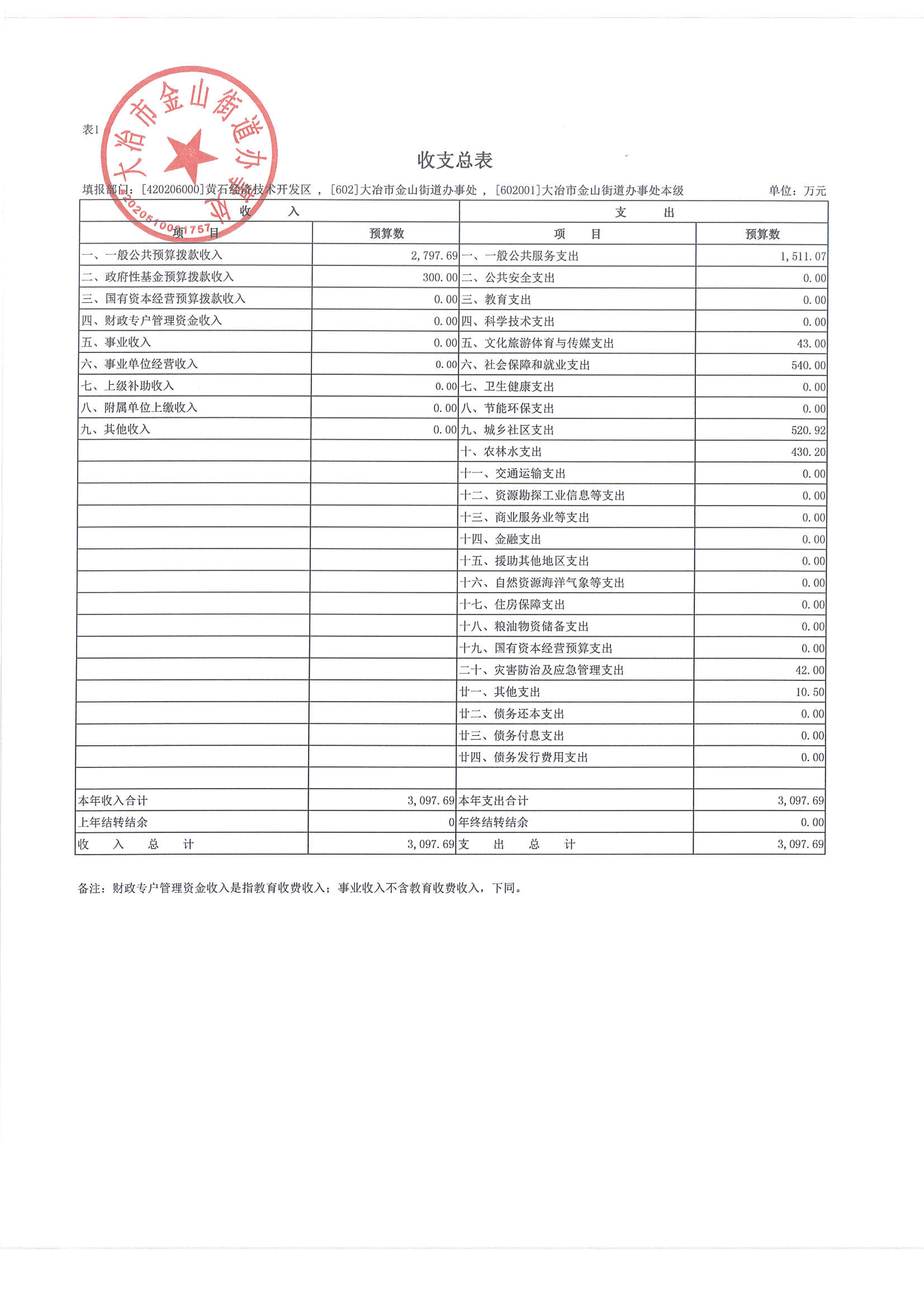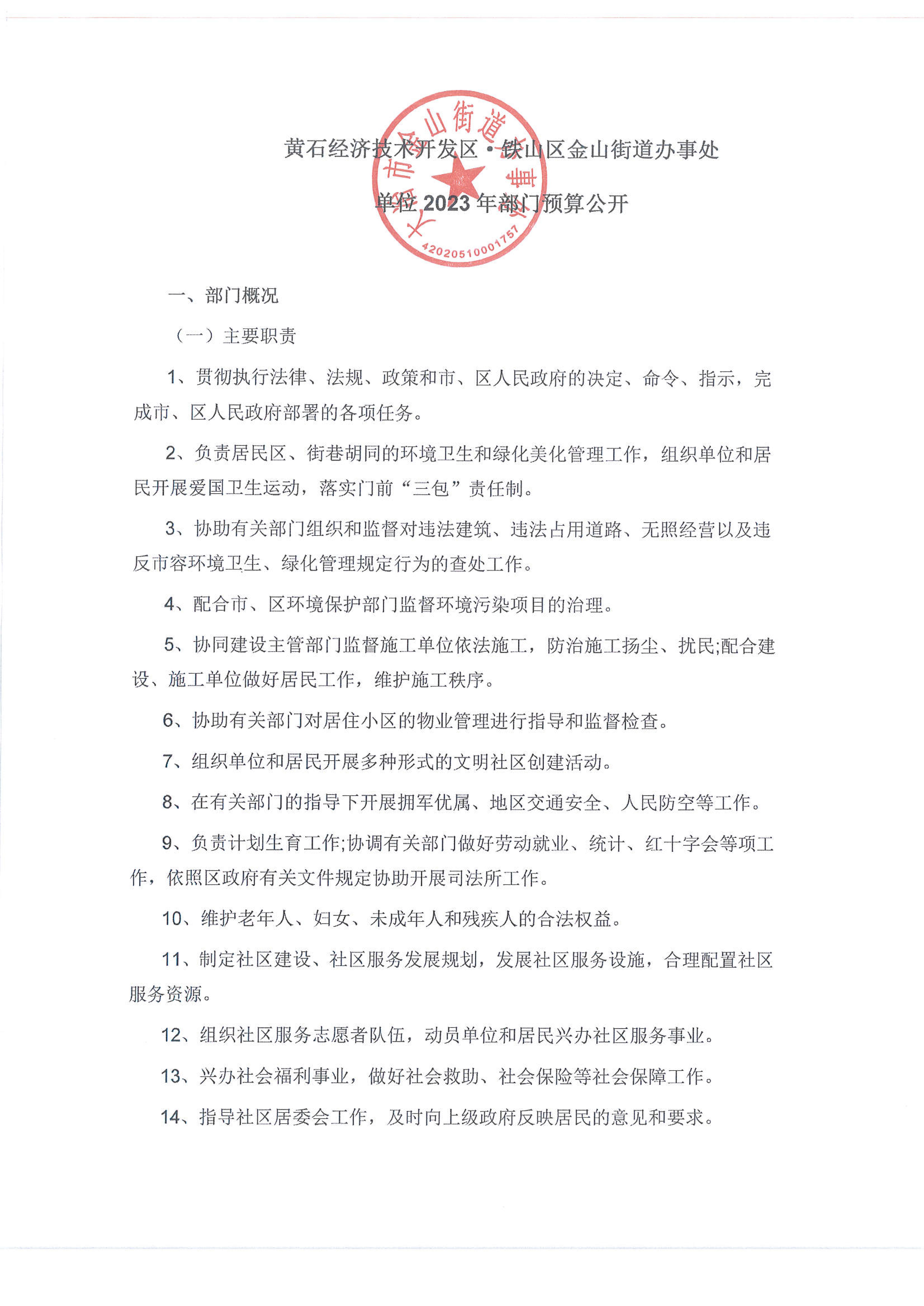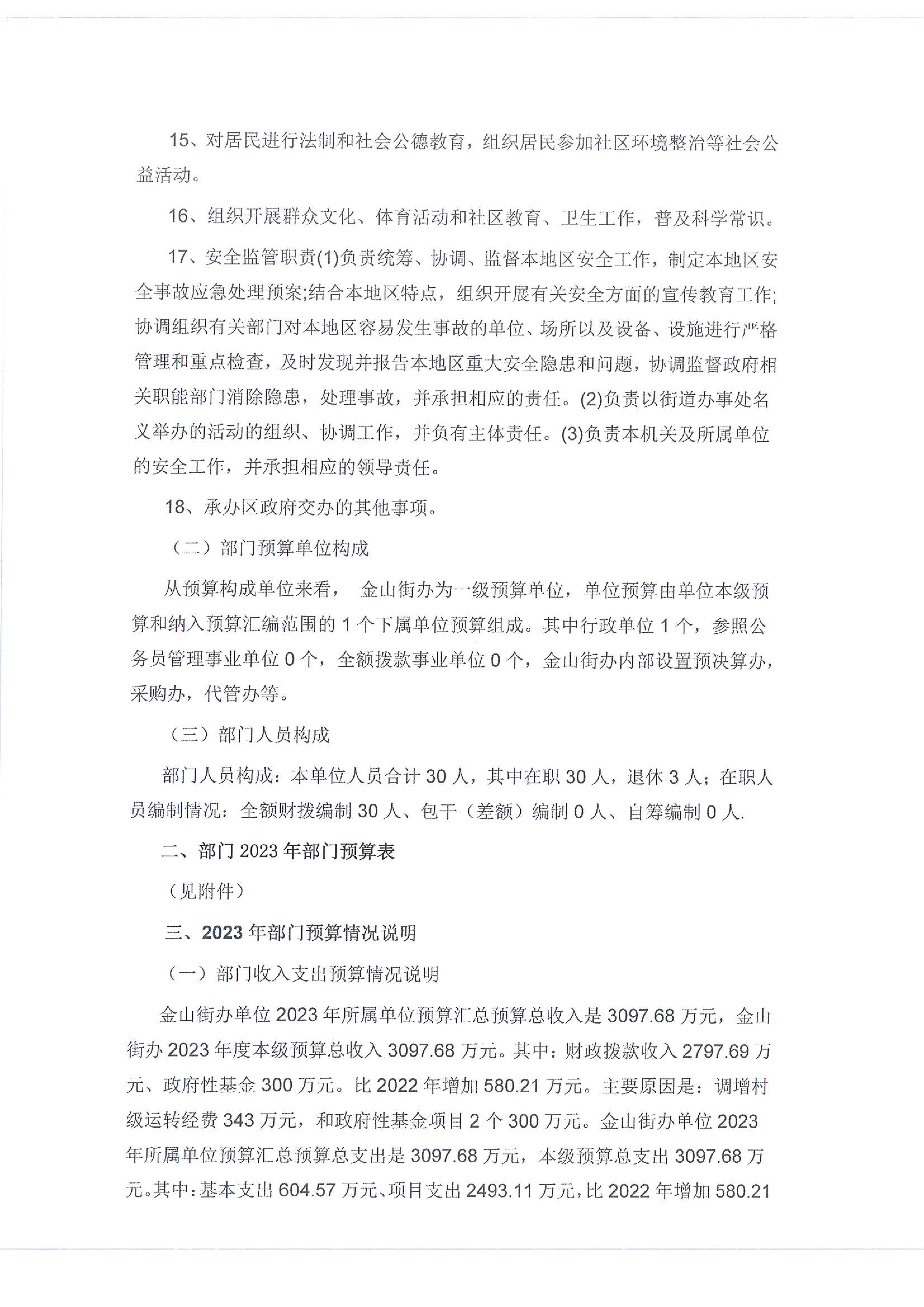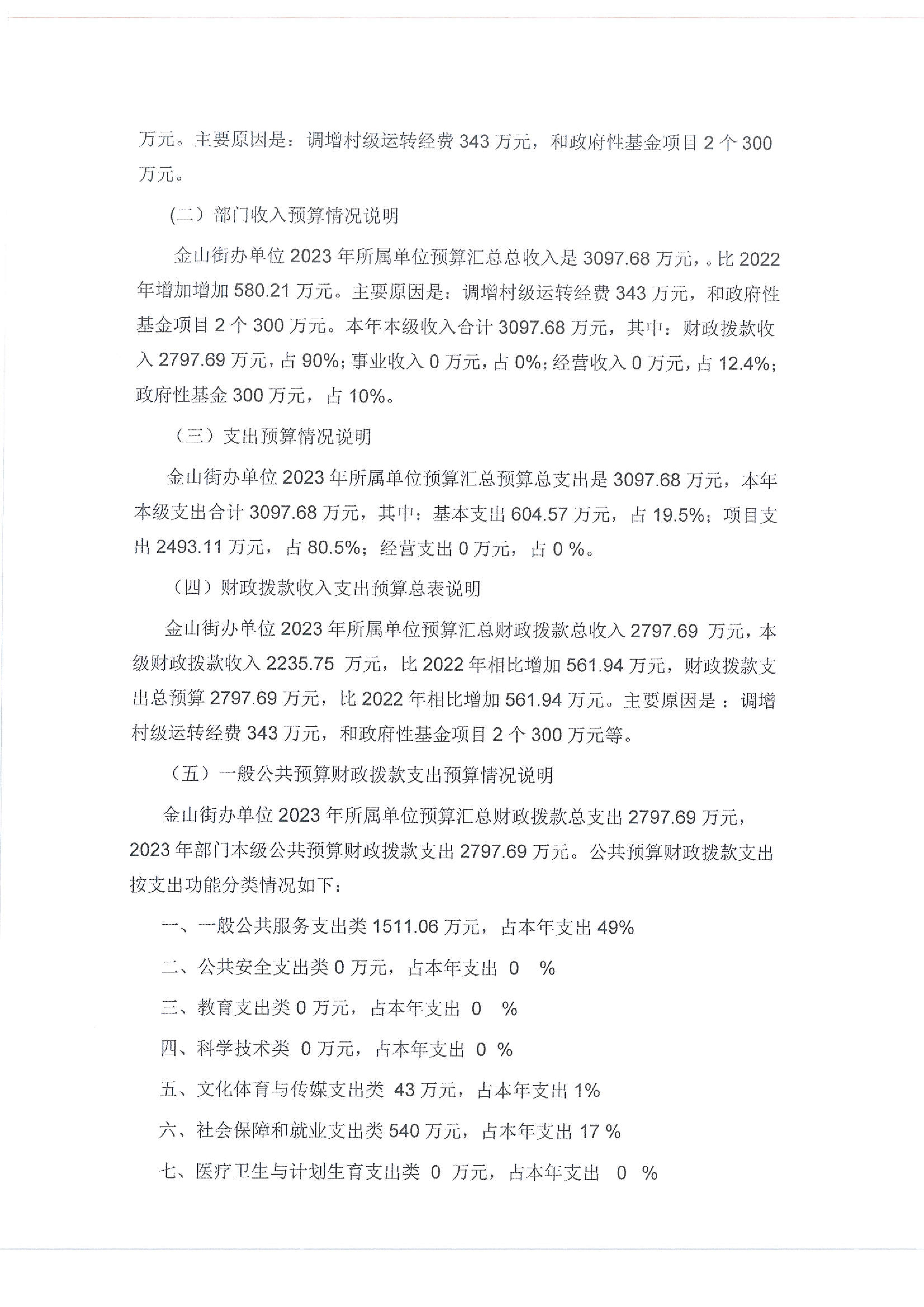 金山街道2023年部门预算公开