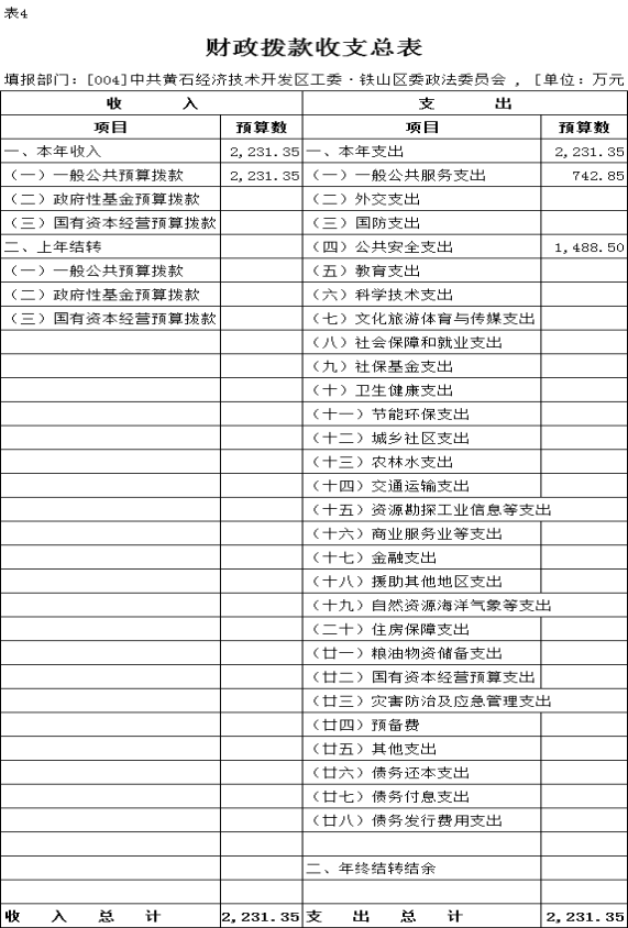 从预算构成单位来看,开发区党工委·铁山区委政法委为一级行政预算单位。下设1个全额拨款事业单位即综治中心。