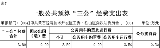2026年“三公”经费公共预算财政拨款支出3.8万元,与2025年“三公”经费相比减少0.7万元,其中: