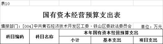 2、表10:国有资本经营预算支出表,我单位无此项内容,本表无数据。