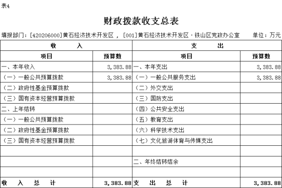 一、一般公共服务支出类3383.88万元,占本年支出100%