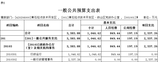 6、基本支出:指为保障机构正常运转、完成日常工作任务而发生的人员支出和公用支出。