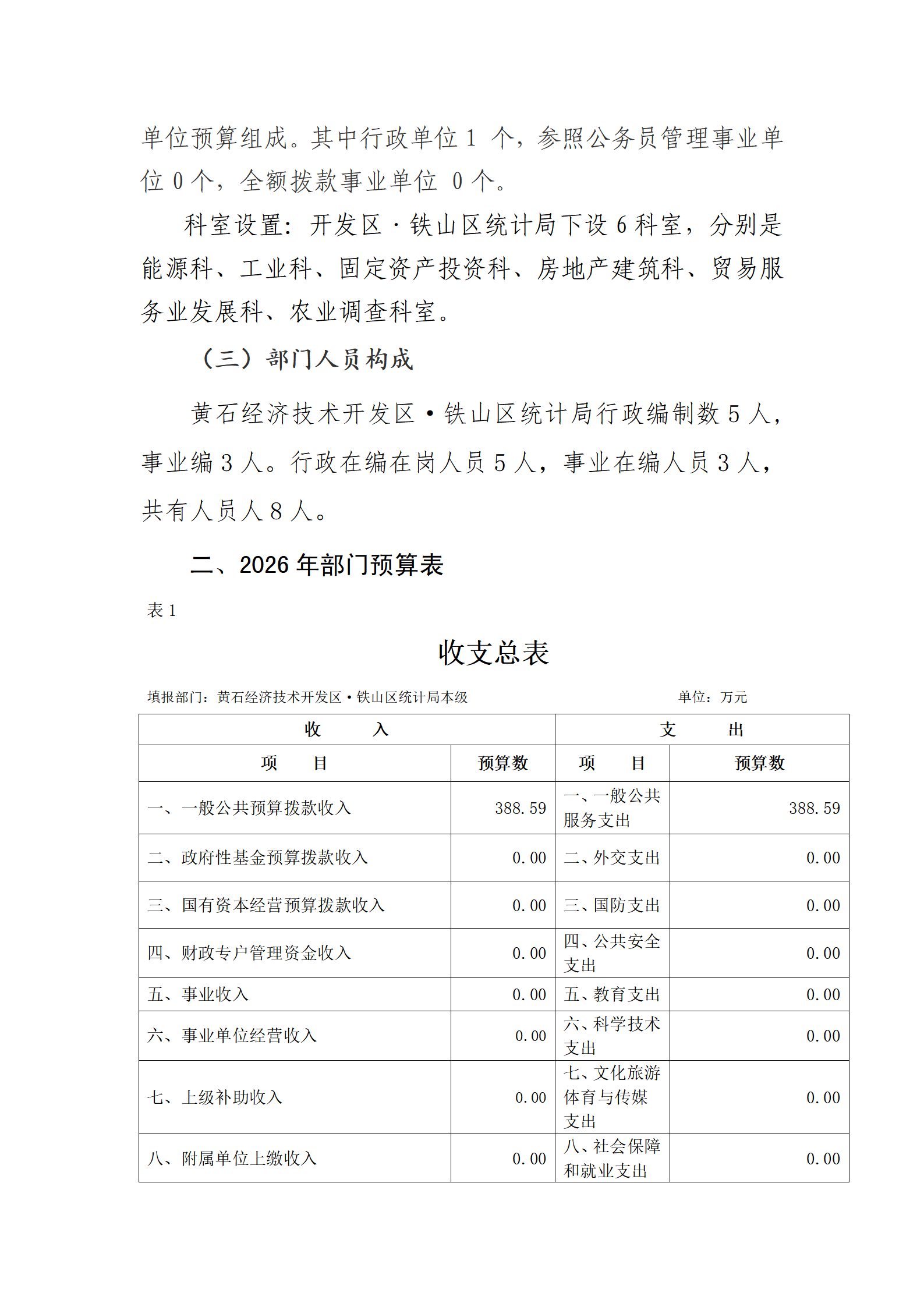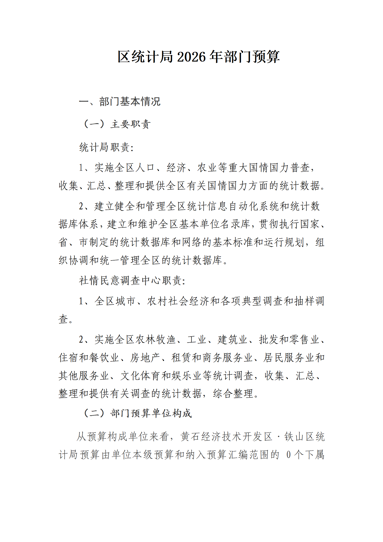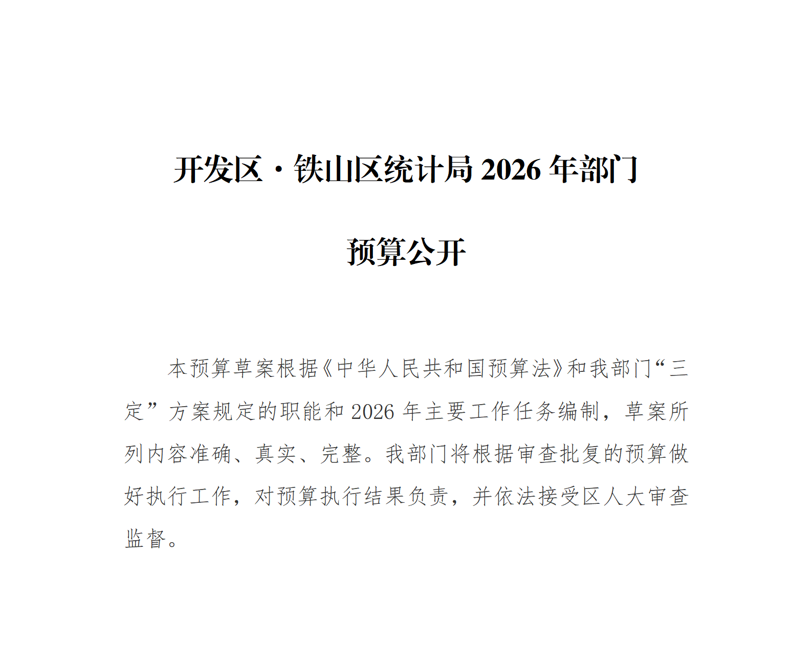 开发区·铁山区统计局2026年部门预算公开