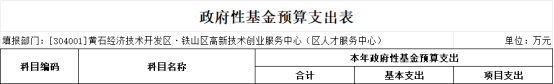 黄石经济技术开发区·铁山区高新技术创业服务中心单位2026年部门预算