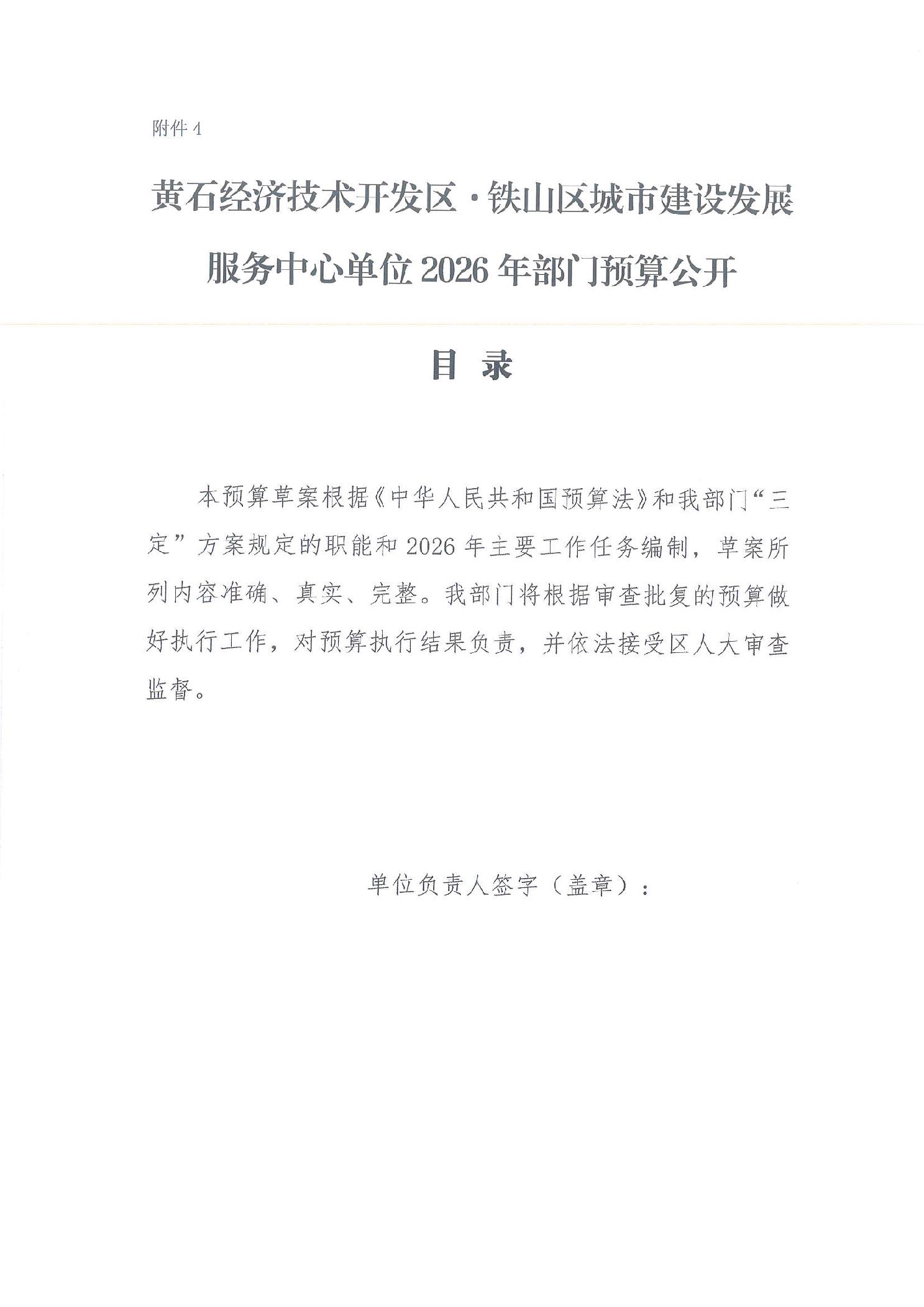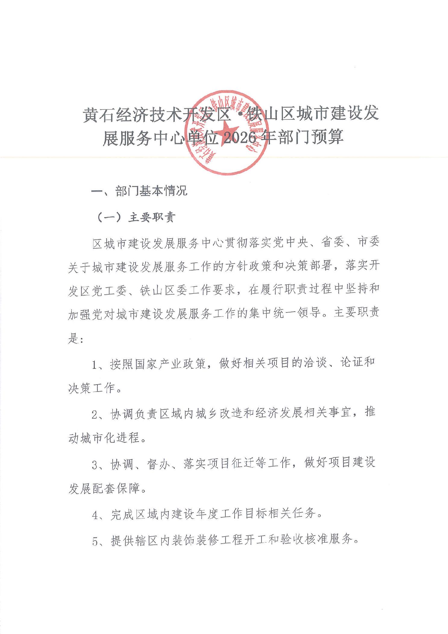 黄石经济技术开发区·铁山区城市建设发展服务中心单位2026年部门预算公开