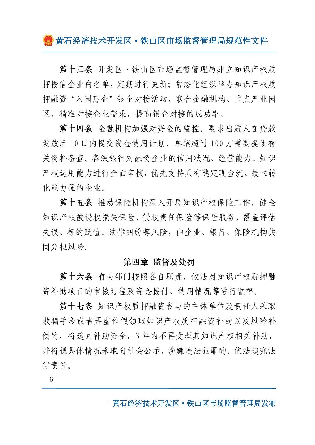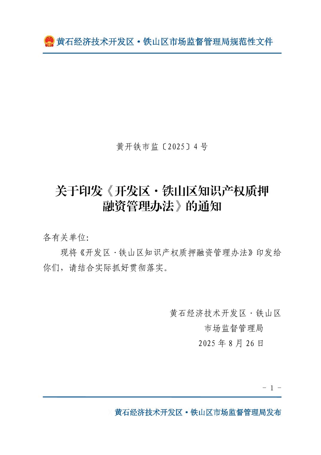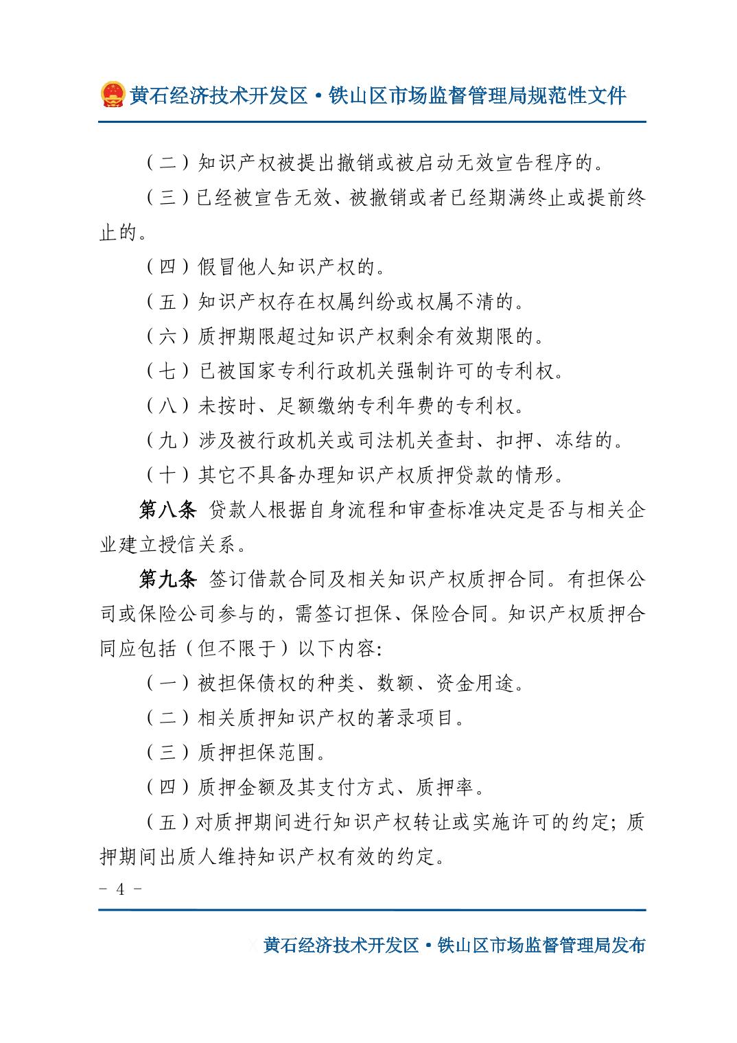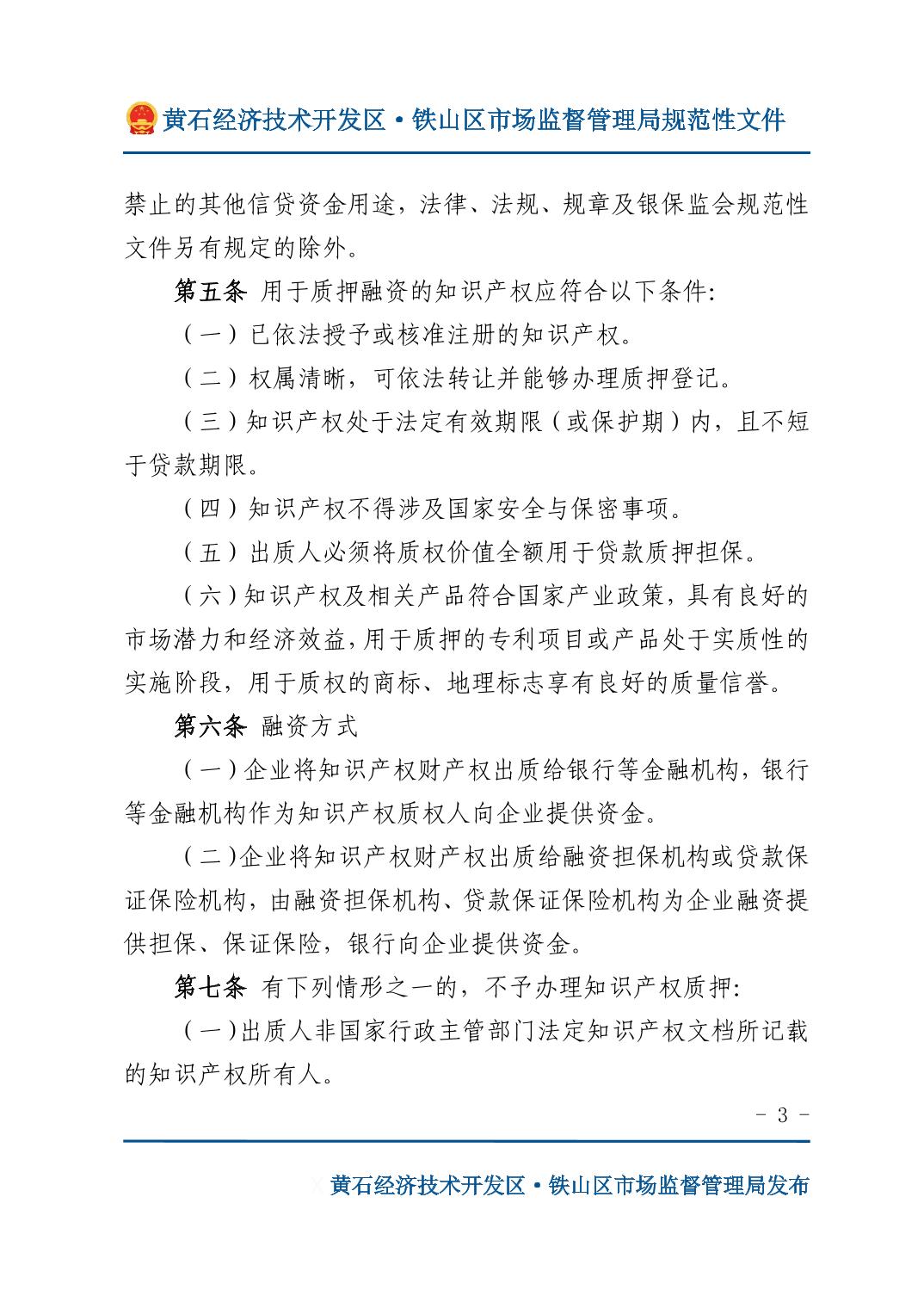 关于印发《开发区·铁山区知识产权质押融资管理办法》的通知